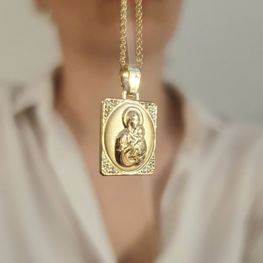 Μενταγιόν Φυλακτό Παναγιά Χρυσό με Ζιργκον
