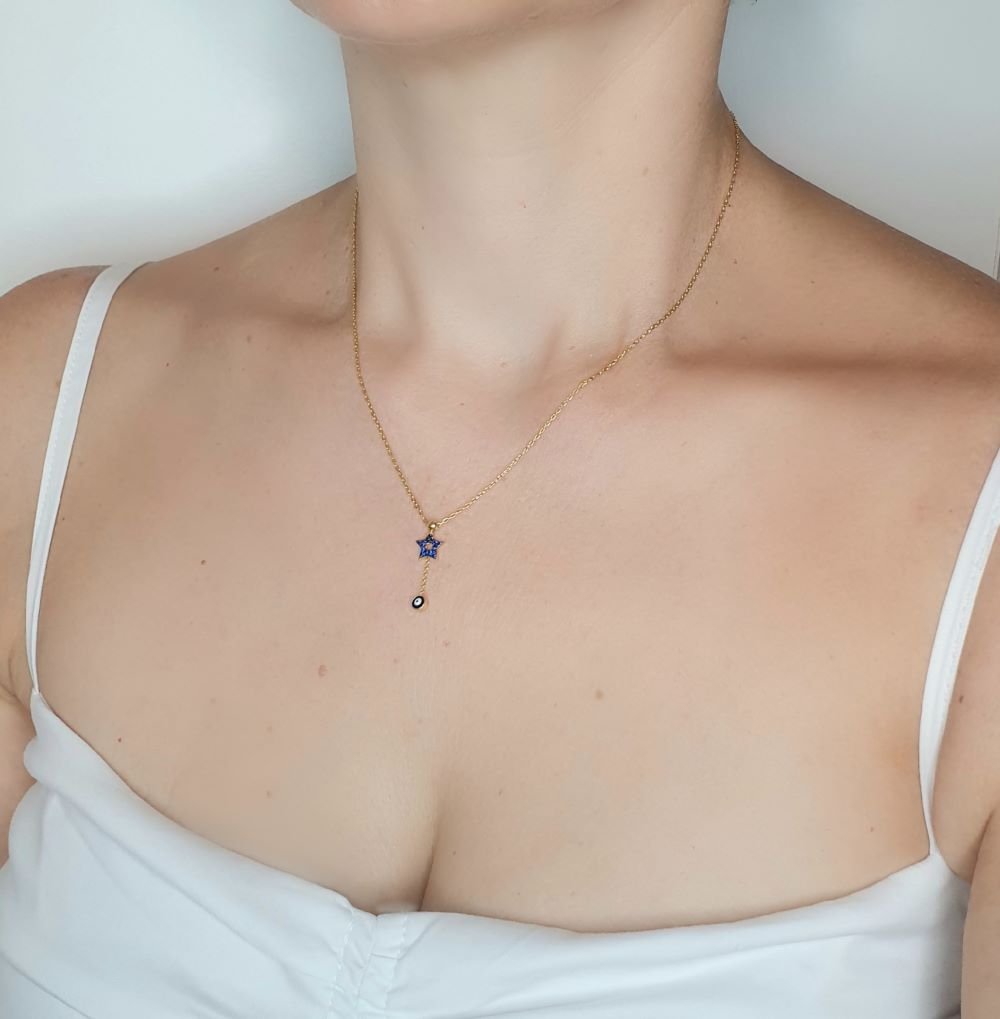 Κολιέ με μπλε αστέρι & μάτι από Ζιργκον