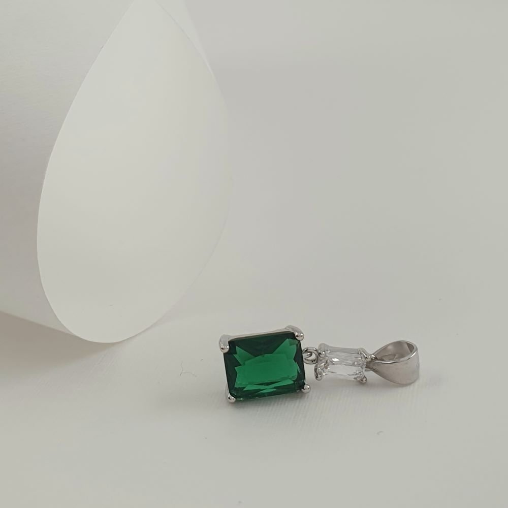 Μενταγιόν ασημένιο με λευκό & πράσινο Ζιργκον