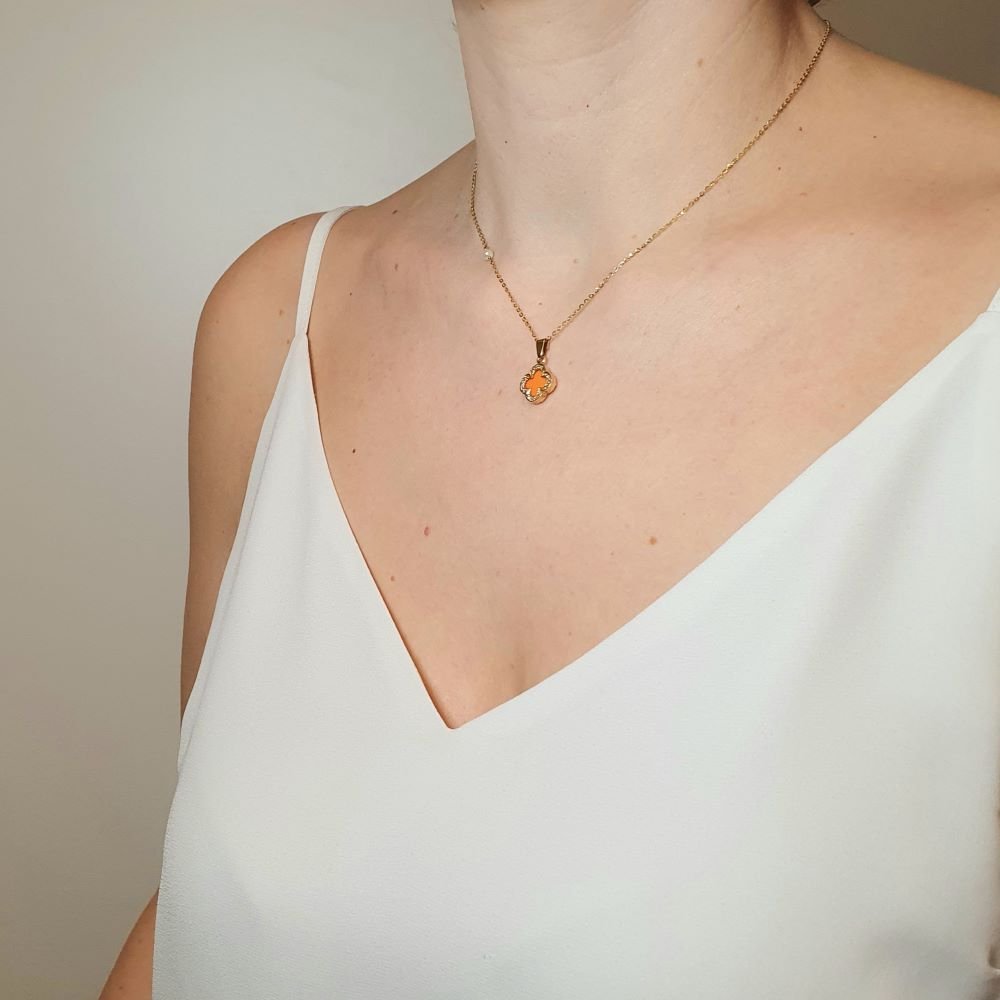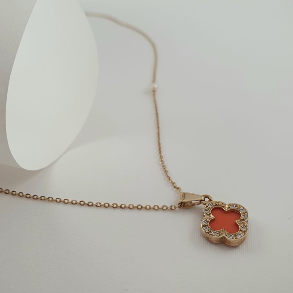 Μενταγιόν χρυσό λουλούδι με Κοράλι & Ζιργκον