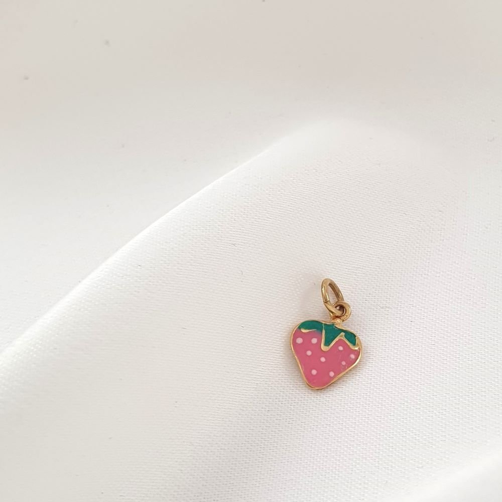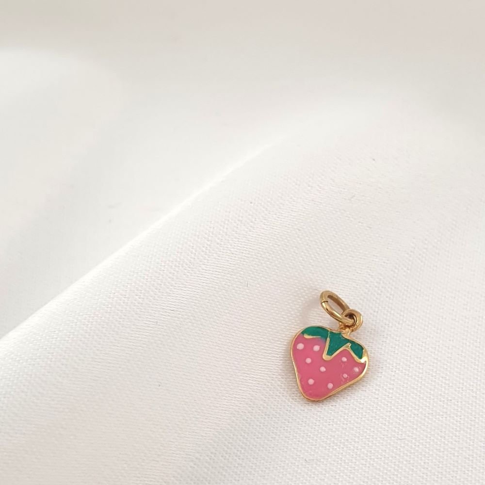 Μενταγιόν φράουλα από ροζ & πράσινο Σμάλτο