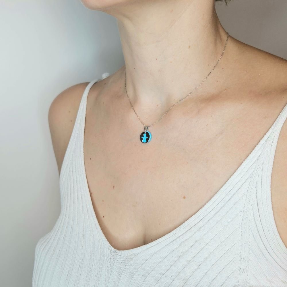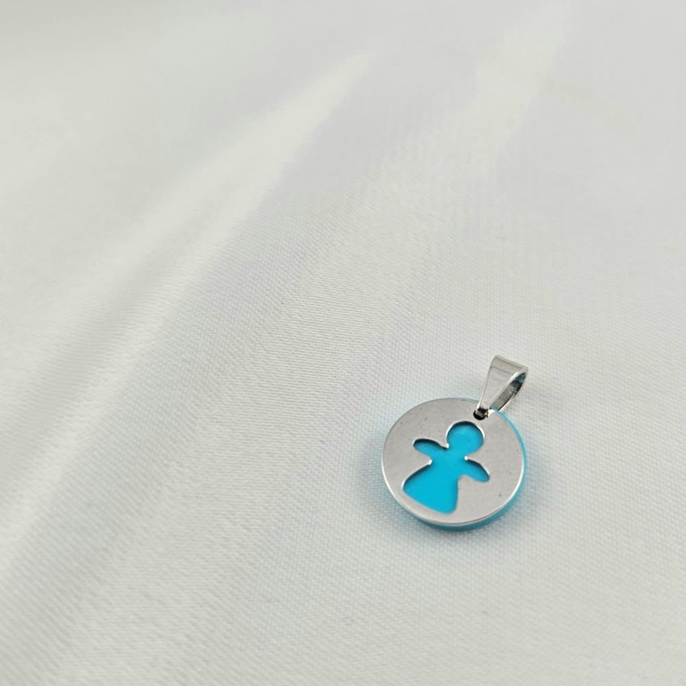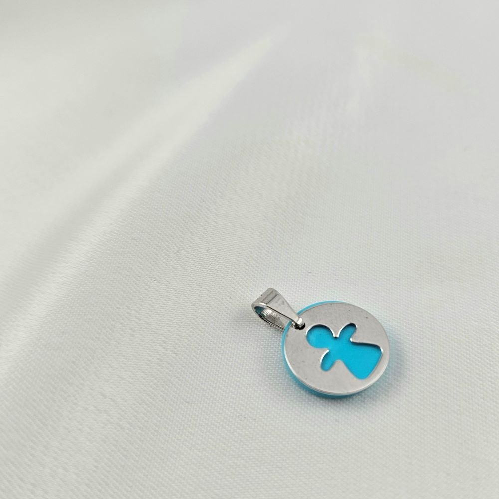Μενταγιόν λευκόχρυσο αγγελάκι με Τιρκουάζ
