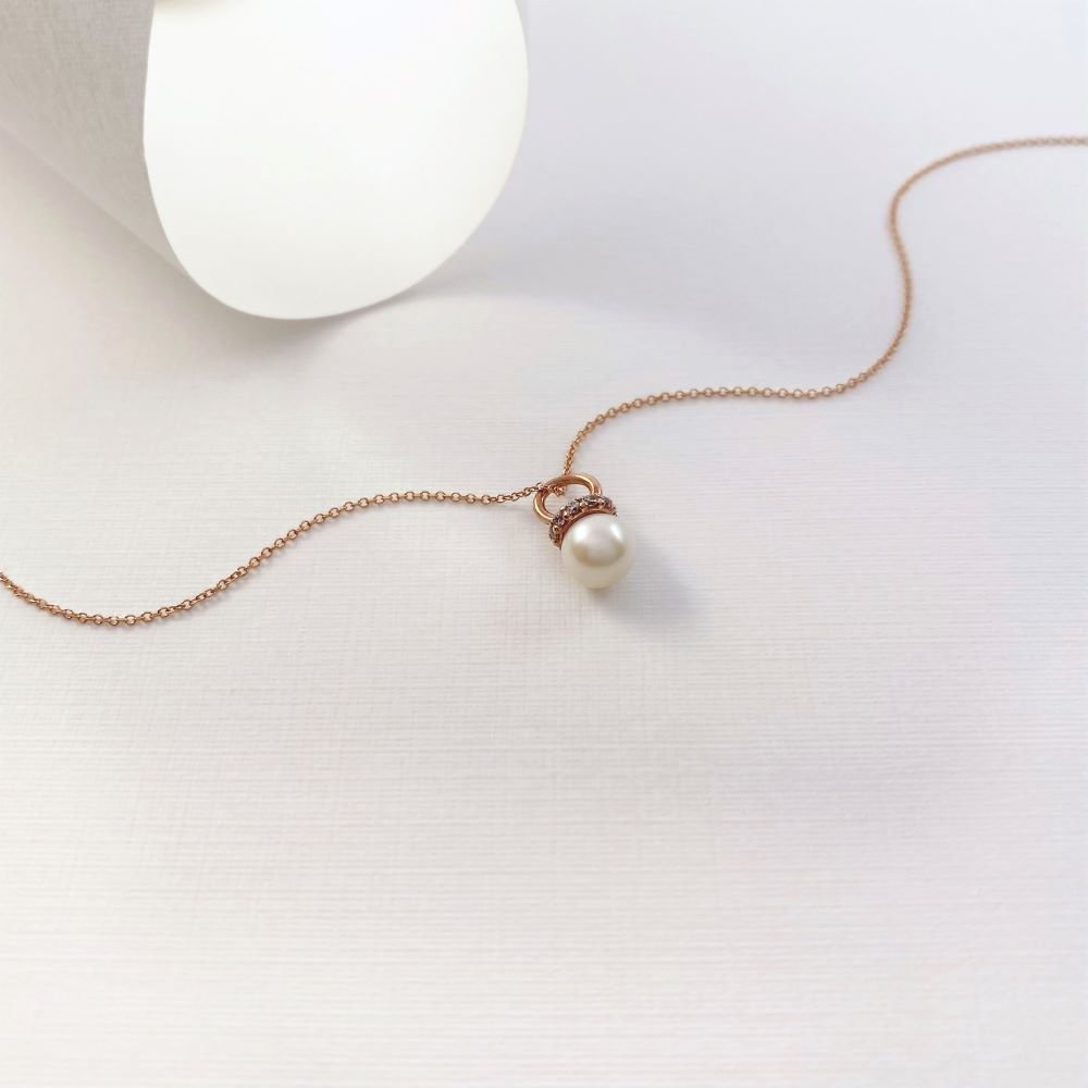 Μενταγιόν με μαργαριτάρι και λευκές πέτρες ζιργκόν