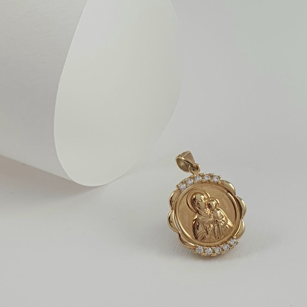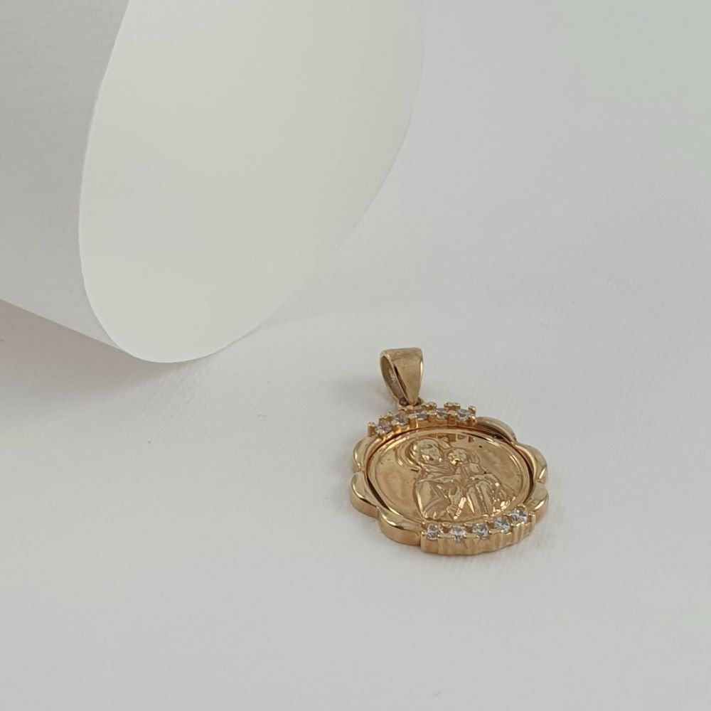 Μενταγιόν Παναγία Χρυσό Στρόγγυλο με Ζιργκον