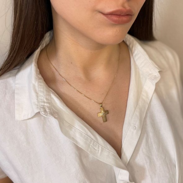 Σταυρός δίχρωμος κίτρινος-λευκός 111 Σταυρός δίχρωμος κίτρινος-λευκός Κωδικός 0027286 830,00 € Προσθήκη στο καλάθι ΔΙΑΘΕΣΙΜΟ Προσθήκη στην wishlist Σταυρός χρυσός δίχρωμος, με κίτρινη ματ επιφάνεια από κάτω και λευκό γυαλιστερό μικρότερο σταυρό επάνω. Αν δεν ξέρετε πιο χρώμα μετάλλου να διαλέξετε για το σταυρό της βάφτισης παρακολουθήστε το παρακάτω βίντεο. ΧΡΩΜΑ ΜΕΤΑΛΛΟΥ: ΧΡΩΜΑ ΜΕΤΑΛΛΟΥ ΚΙΤΡΙΝΟ-ΛΕΥΚΟΚΙΤΡΙΝΟ-ΛΕΥΚΟ ΜΕΤΑΛΛΟ: ΜΕΤΑΛΛΟ ΧΡΥΣΟΣ K9ΧΡΥΣΟΣ K9 ΕΠΕΞΕΡΓΑΣΙΑ: ΕΠΕΞΕΡΓΑΣΙΑ ΜΑΤ-ΓΥΑΛΙΣΤΕΡΟΜΑΤ-ΓΥΑΛΙΣΤΕΡΟ Διαστασεις Οι διαστάσεις του σταυρού είναι 32x19 mm (η πρώτη διάσταση είναι μαζί με τον κρίκο). Βαρος 4,60 g Ποσότητα Εγγυηση Συνοδεύεται από εγγύηση ποιότητας και κατασκευής από το ΚΛΖΛΝΛLBΛ.