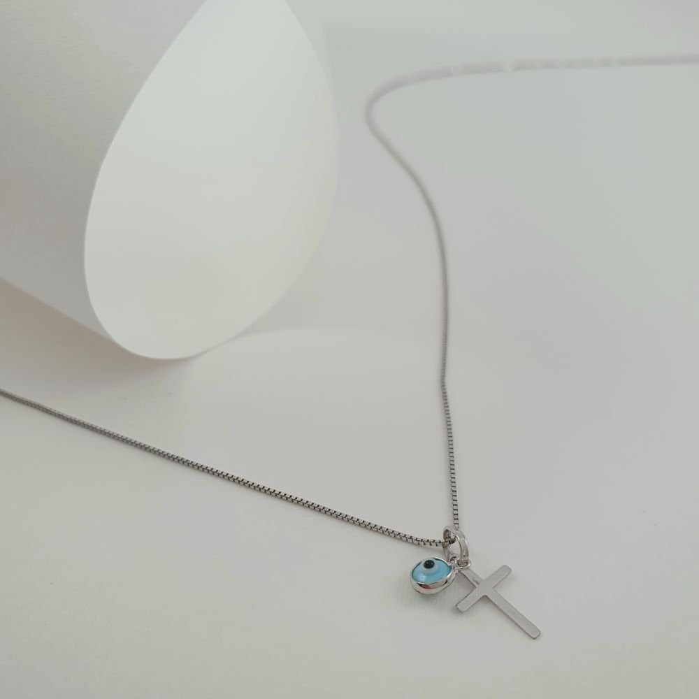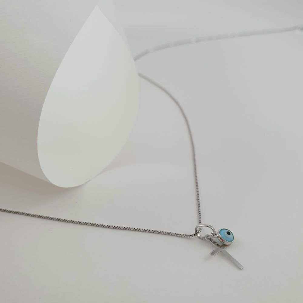 Σταυρός λευκόχρυσος με ματάκι από Μουράνο