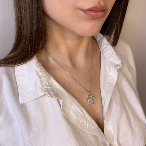 Σταυρός με mother of pearl και ζιργκόν 111 Σταυρός με mother of pearl και ζιργκόν Κωδικός 0026918 879,00 € Προσθήκη στο καλάθι ΔΙΑΘΕΣΙΜΟ Προσθήκη στην wishlist Το Φίλντισι είναι ιδανικό για να το φοράτε επάνω σας γιατί έχει την ιδιότητα να επουλώνει αλλοιώσεις στο δέρμα. Επίσης δίνει λάμψη και θρέψη στο γυναικείο δέρμα. Αν θέλετε να μάθετε όλα τα μυστικά για το mother of pearl παρακολουθήστε το παρακάτω βίντεο. Σταυρός χρυσός με mother of pearl και λευκά ζιργκόν, κατάλληλος τόσο για βάπτιση, όσο και για να φορεθεί σαν κόσμημα. Για να κάνετε την καλύτερη επιλογή σταυρού παρακολουθήστε το παρακάτω βίντεο. ΧΡΩΜΑ ΜΕΤΑΛΛΟΥ: ΧΡΩΜΑ ΜΕΤΑΛΛΟΥ ΛΕΥΚΟΛΕΥΚΟ ΡΟΖΡΟΖ ΜΕΤΑΛΛΟ: ΜΕΤΑΛΛΟ ΧΡΥΣΟΣ K14ΧΡΥΣΟΣ K14 ΕΠΕΞΕΡΓΑΣΙΑ: ΕΠΕΞΕΡΓΑΣΙΑ ΓΥΑΛΙΣΤΕΡΟΓΥΑΛΙΣΤΕΡΟ ΛΙΘΟΣ ΛΙΘΟΣ ΛΙΘΟΣ: ΛΙΘΟΣ MOTHER OF PEARLMOTHER OF PEARL ΛΙΘΟΣ 1: ΛΙΘΟΣ 1 ΖΙΡΓΚΟΝΖΙΡΓΚΟΝ ΧΡΩΜΑ ΛΙΘΟΥ ΧΡΩΜΑ ΛΙΘΟΥ ΧΡΩΜΑ ΛΙΘΟΥ: ΧΡΩΜΑ ΛΙΘΟΥ WHITEWHITE ΧΡΩΜΑ ΛΙΘΟΥ 1: ΧΡΩΜΑ ΛΙΘΟΥ 1 WHITEWHITE Διαστασεις Οι διαστάσεις του σταυρού είναι 27,8x18 mm (η πρώτη διάσταση είναι μαζί με το κρίκο). Βαρος 4,20 g Ποσότητα Εγγυηση Συνοδεύεται από εγγύηση ποιότητας και κατασκευής από το ΚΛΖΛΝΛLBΛ.