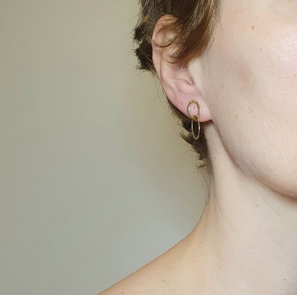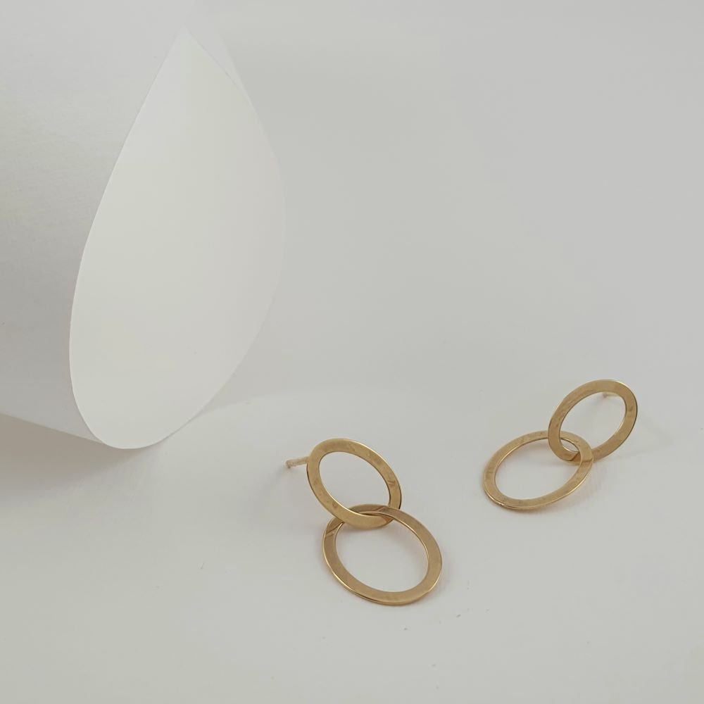 Σκουλαρίκια χρυσά κρεμαστά διπλοί κρίκοι