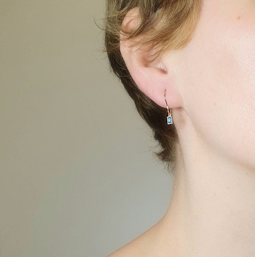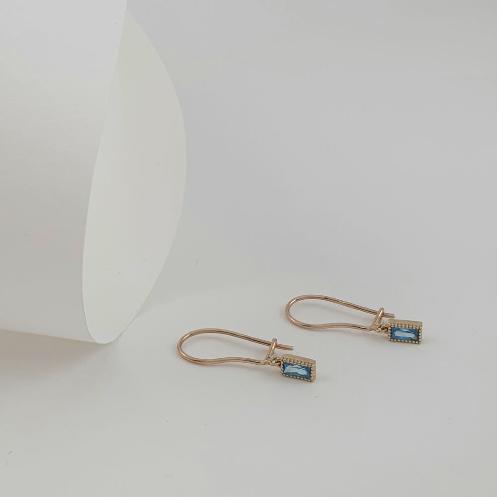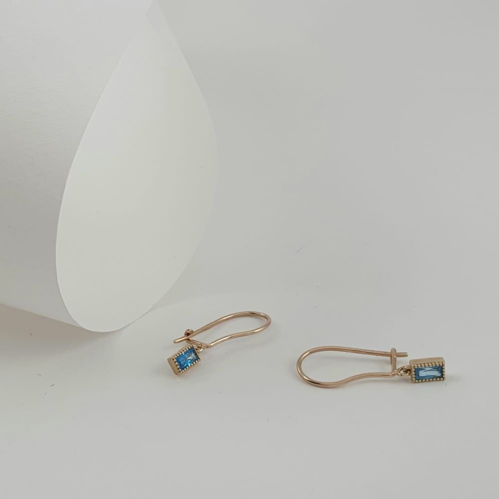 Σκουλαρίκια χρυσά κρεμαστά με γαλάζιο Ζιργκον