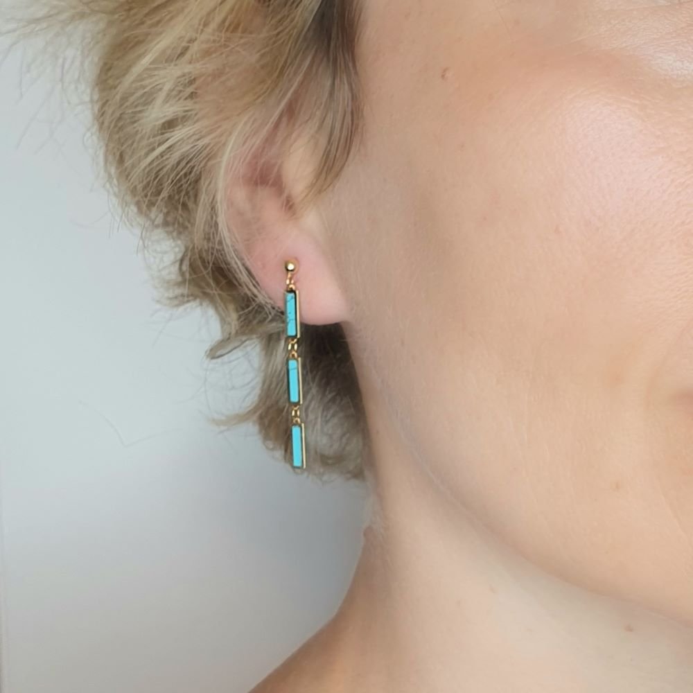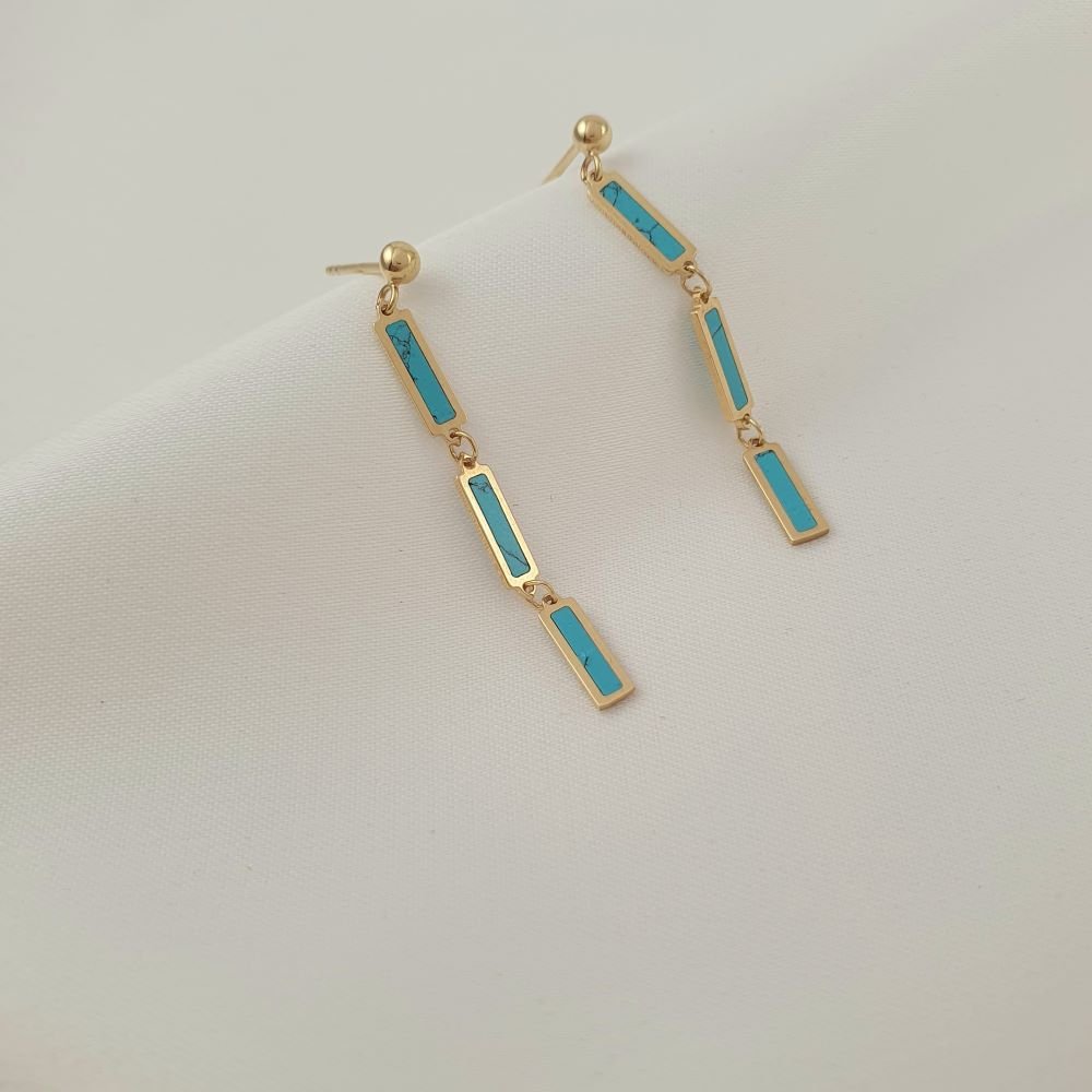 Σκουλαρίκια χρυσά κρεμαστά με Τιρκουάζ