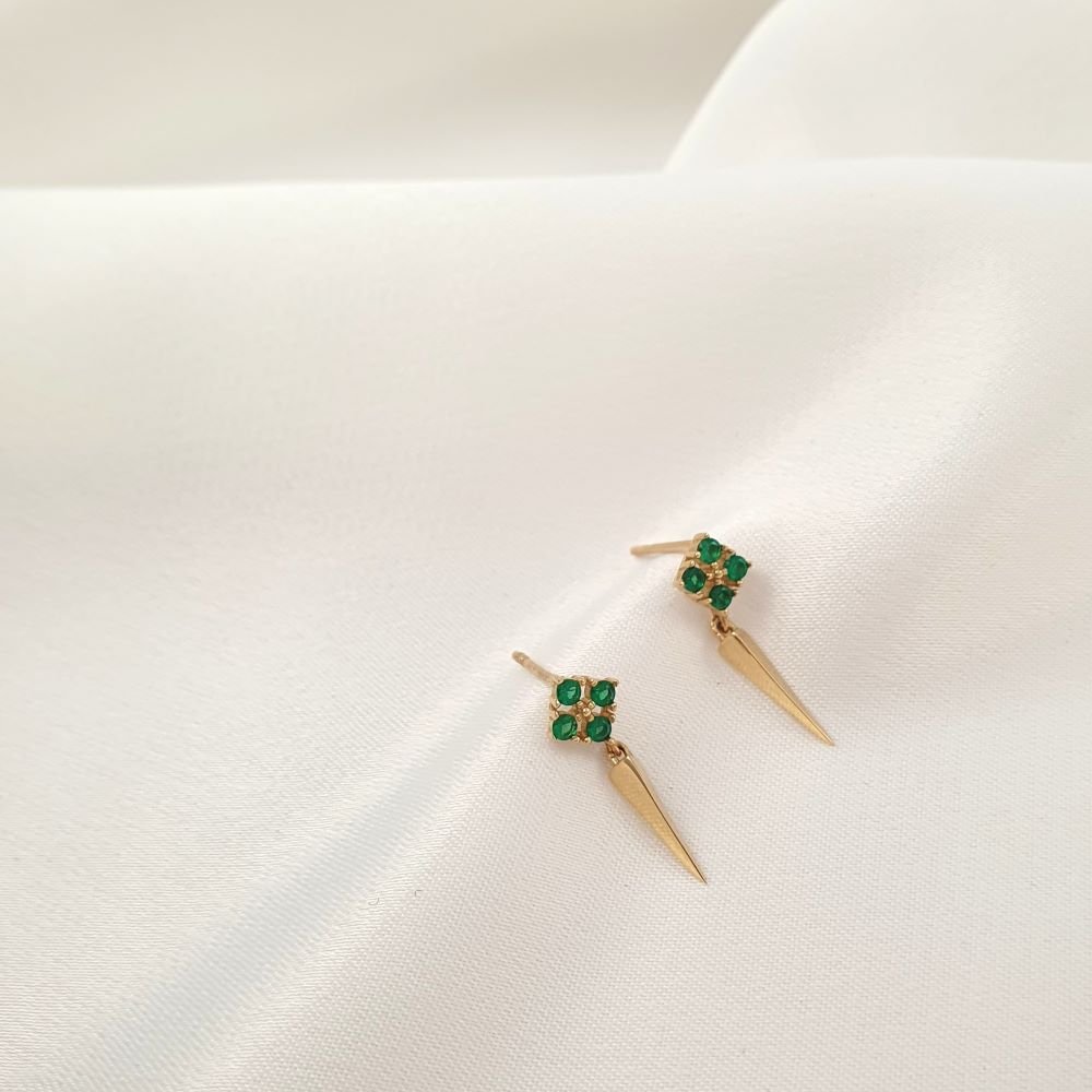 Σκουλαρίκια χρυσά με πράσινα Ζιργκον