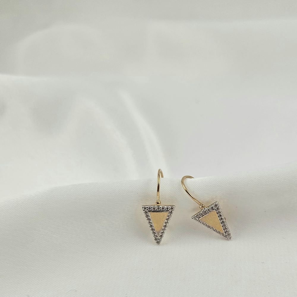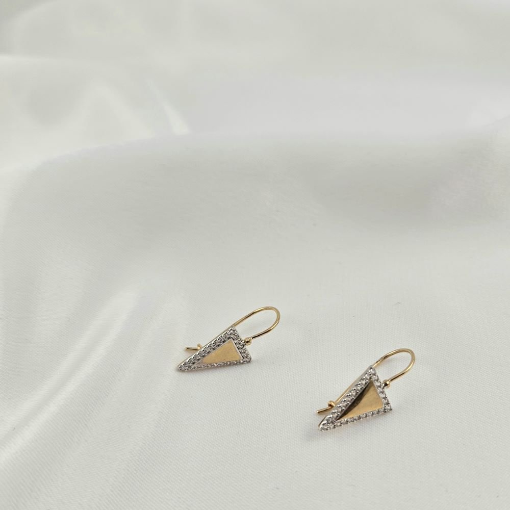 Σκουλαρίκια χρυσά τριγωνικά με λευκά Ζιργκον