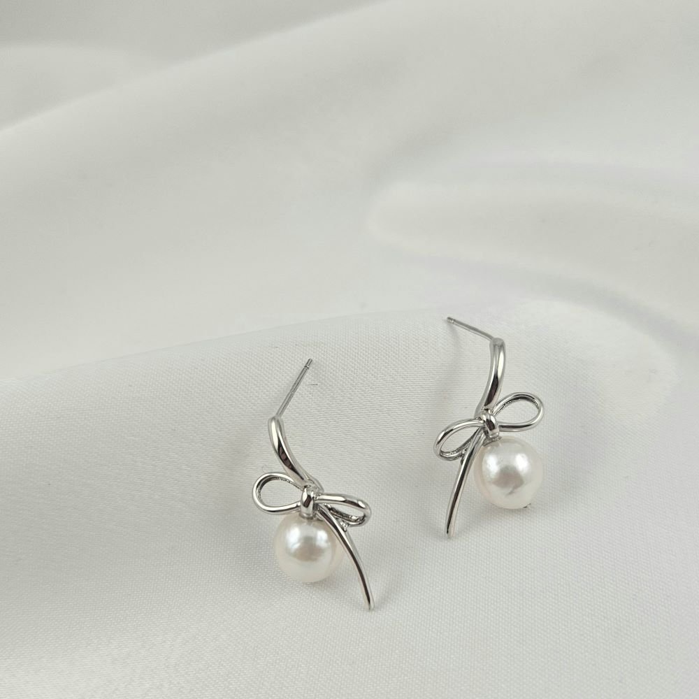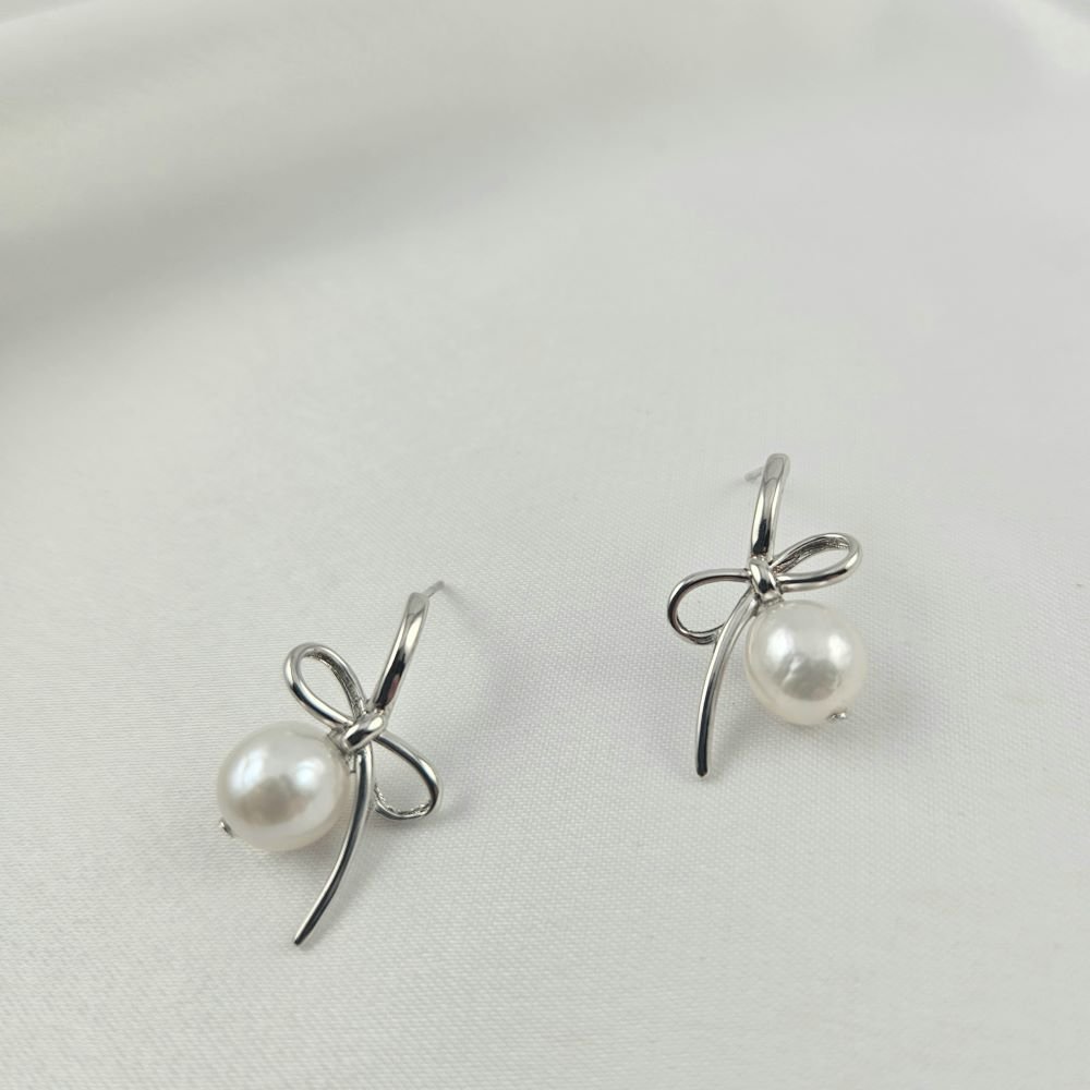 Σκουλαρίκια κρεμαστά με Φιόγκο & Μαργαριτάρι