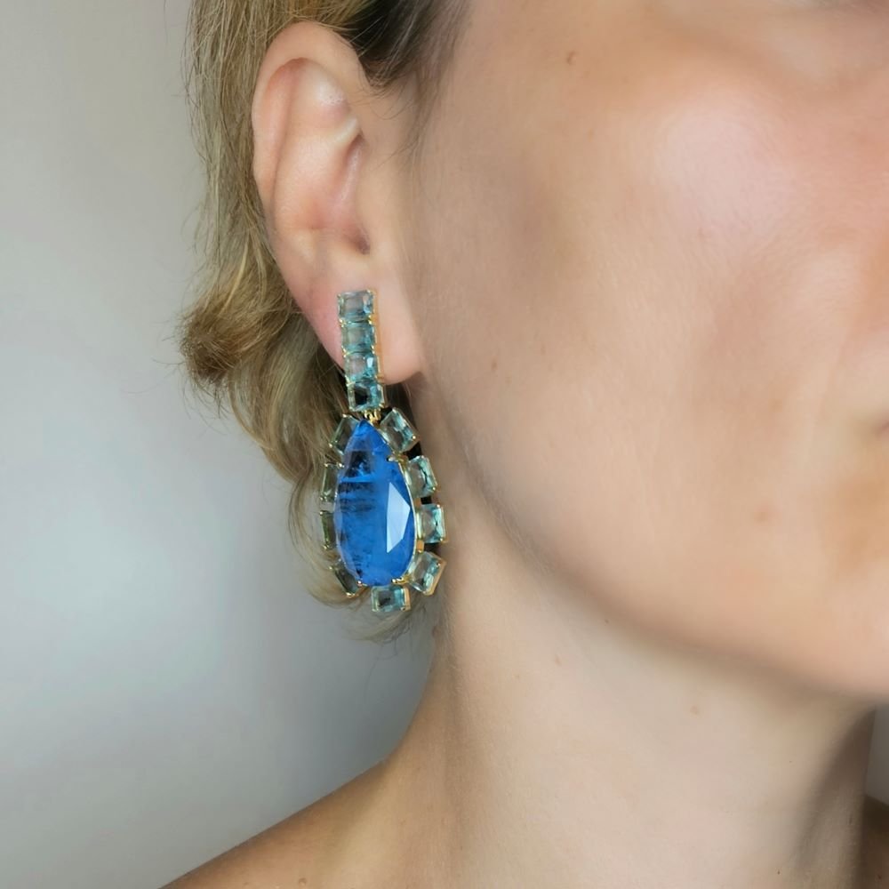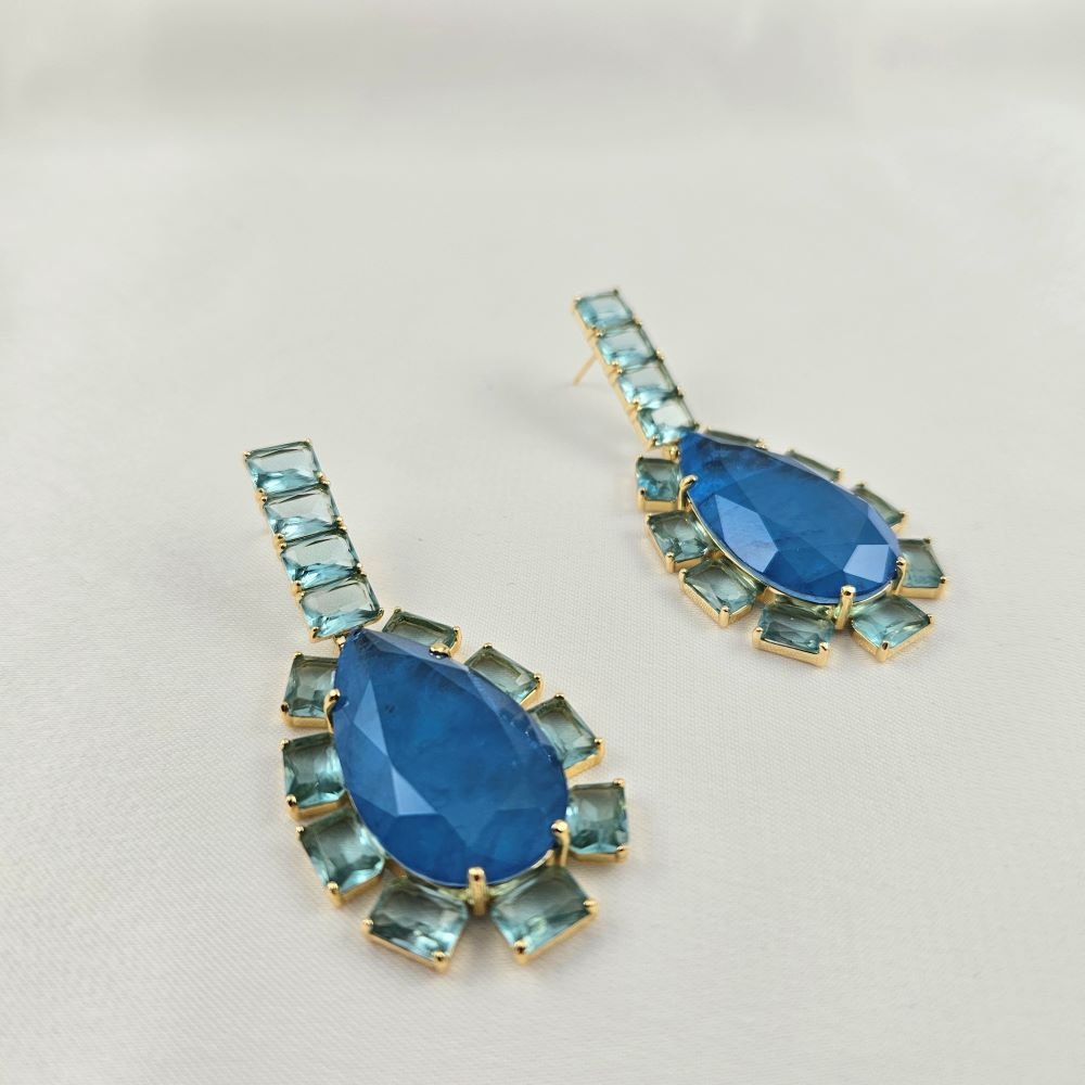 Σκουλαρίκια κρεμαστά με γαλάζια Ζιργκον