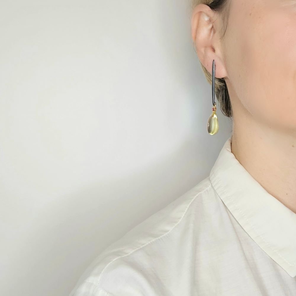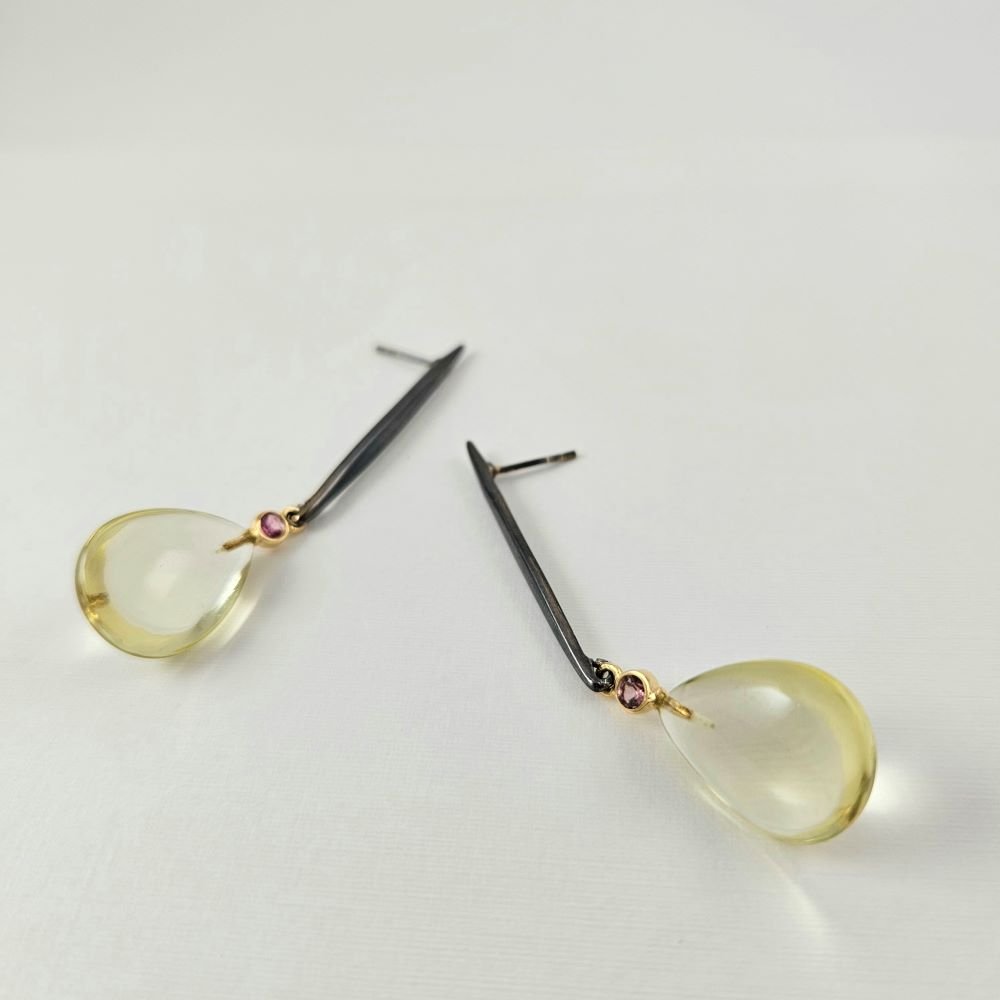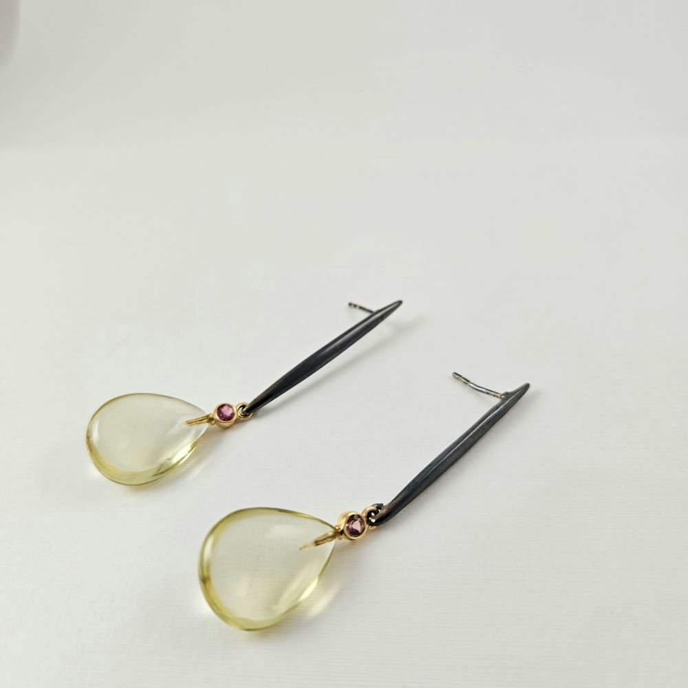 Σκουλαρίκια κρεμαστά με κίτρινο Κουάρτζ & Τουρμαλίνη