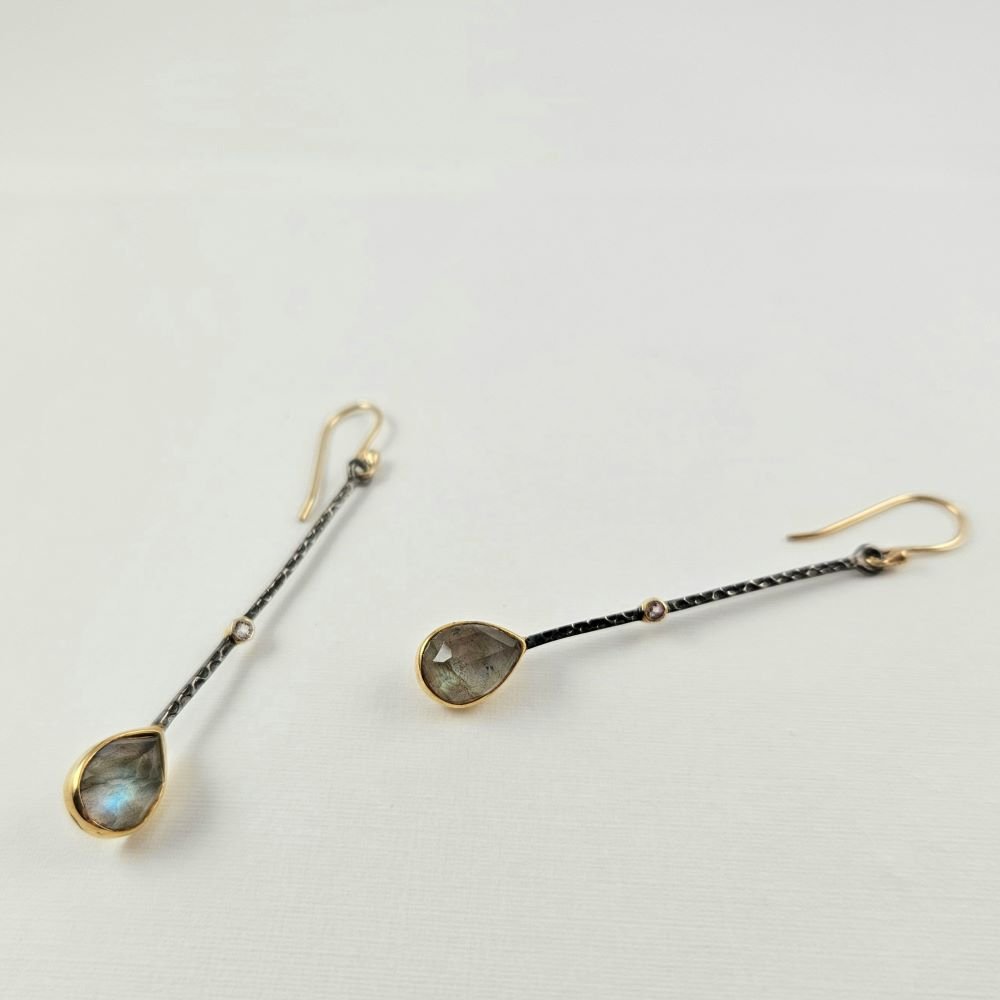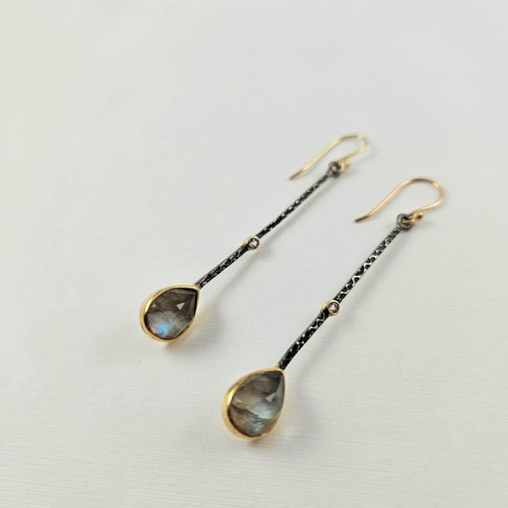 Σκουλαρίκια κρεμαστά με Λαμπραδορίτη & Τουρμαλίνη
