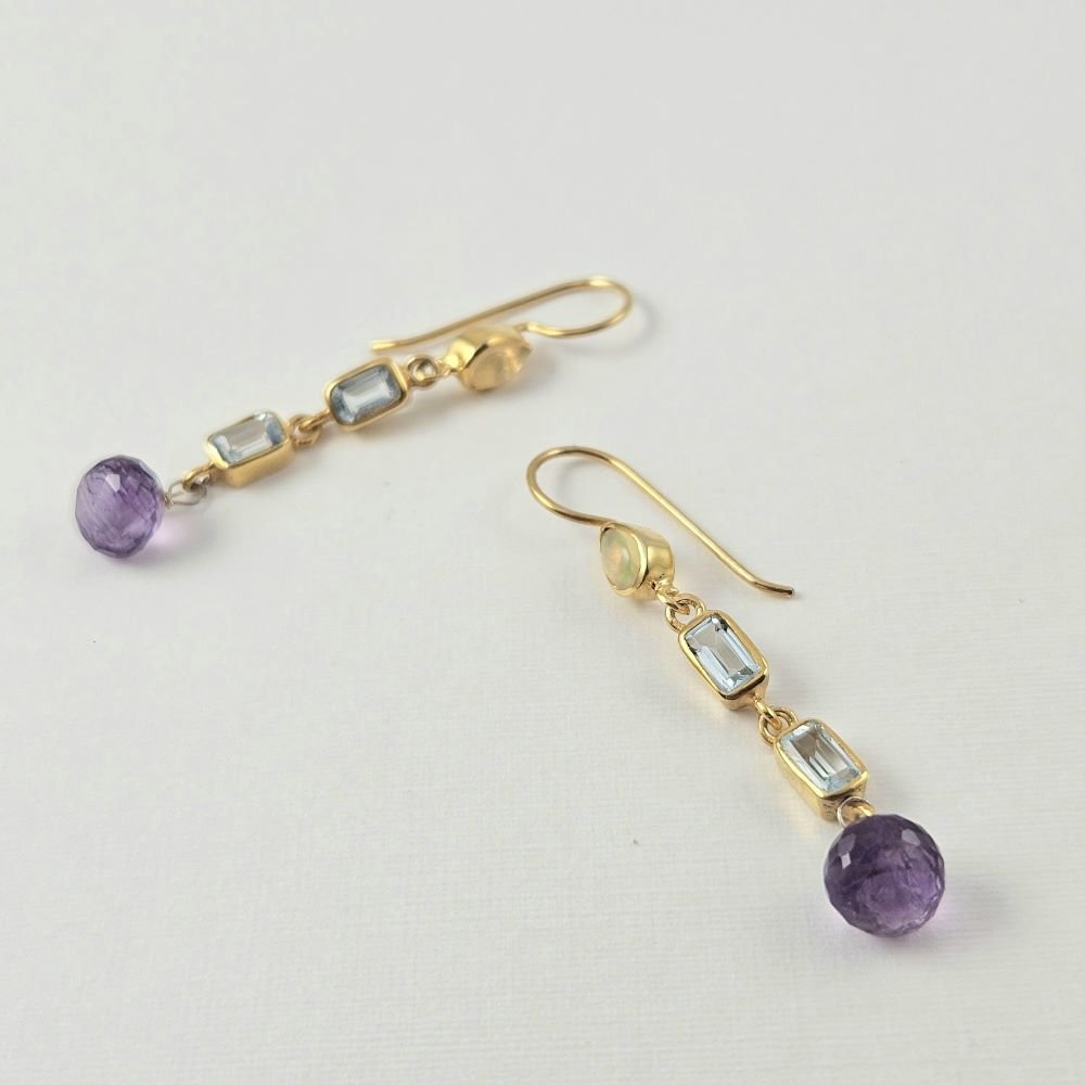 Σκουλαρίκια κρεμαστά με Οπάλιο, Τοπάζι & Αμέθυστο