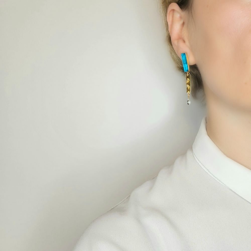 Σκουλαρίκια κρεμαστά με Παρίμπα & Aquamarine