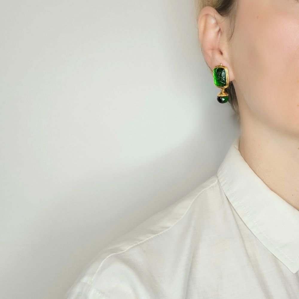 Σκουλαρίκια κρεμαστά με πράσινο Κουάρτζ