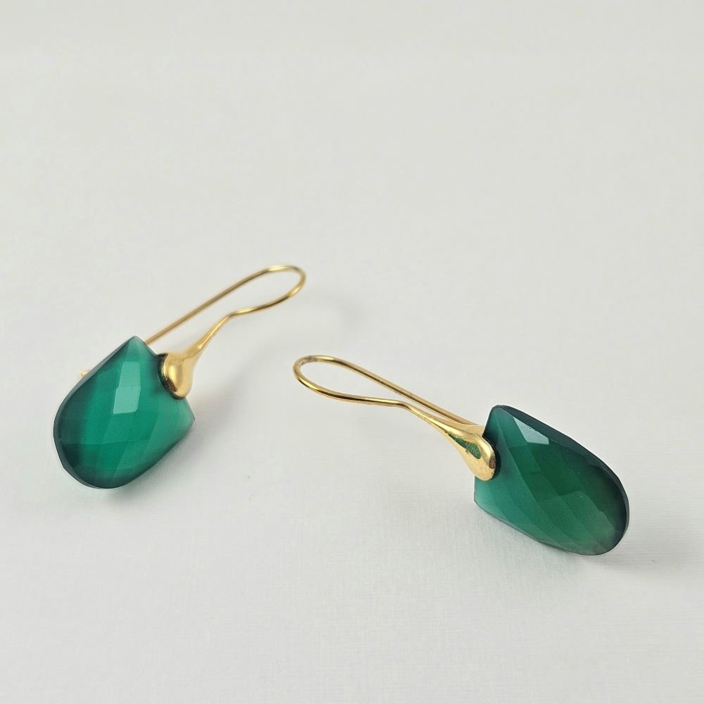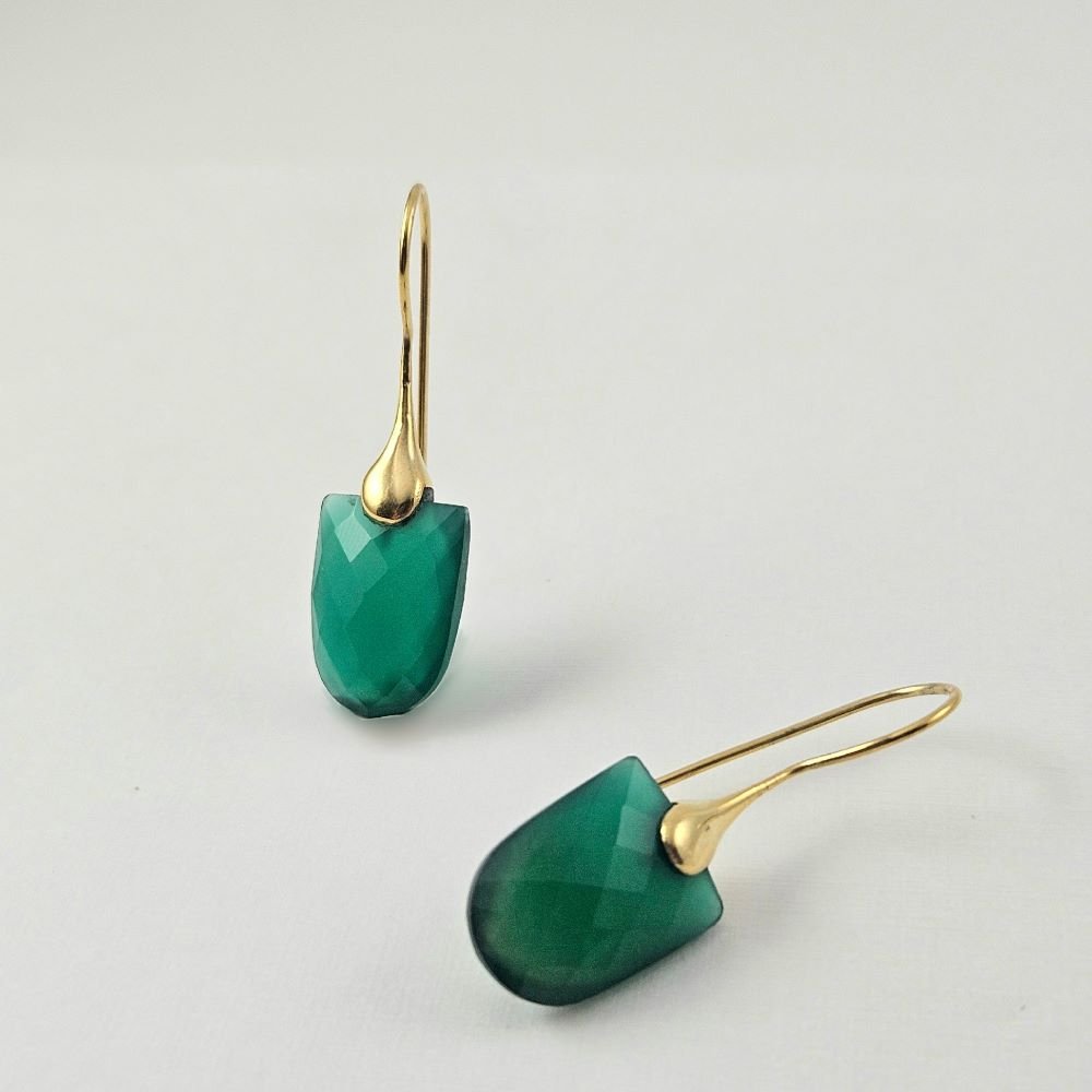 Σκουλαρίκια κρεμαστά με πράσινο Όνυχα