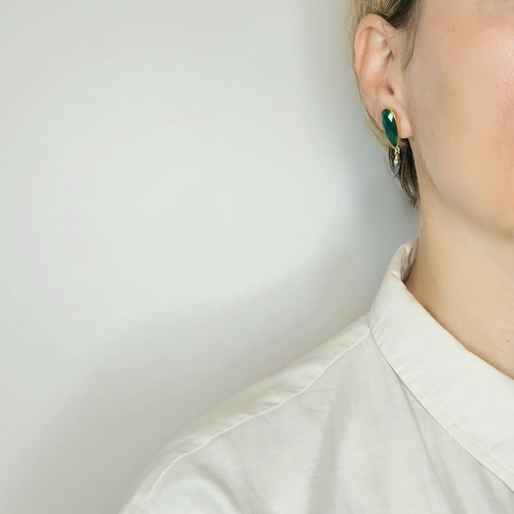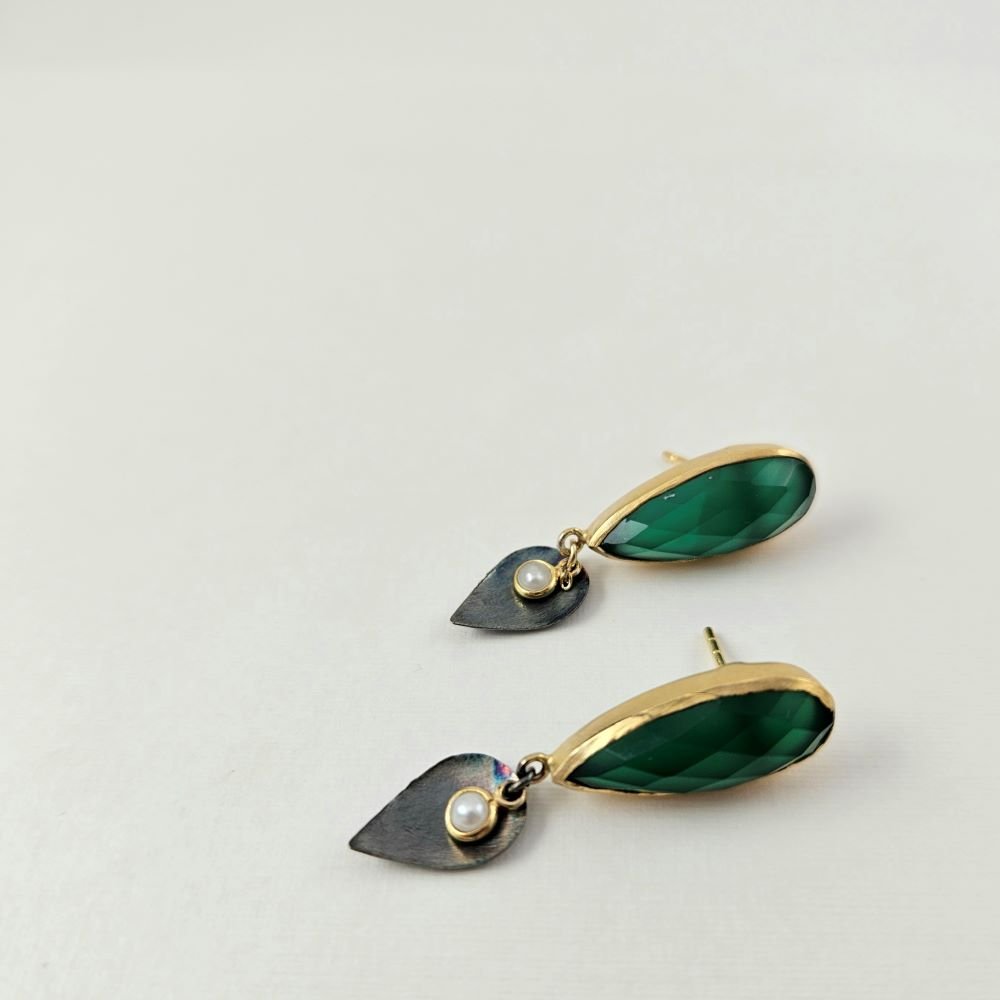 Σκουλαρίκια κρεμαστά με πράσινο Όνυχα & Μαργαριτάρι
