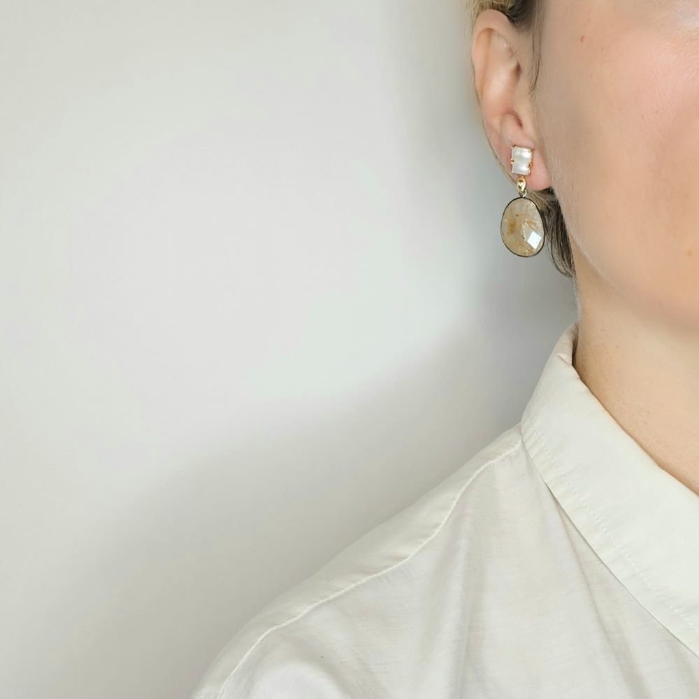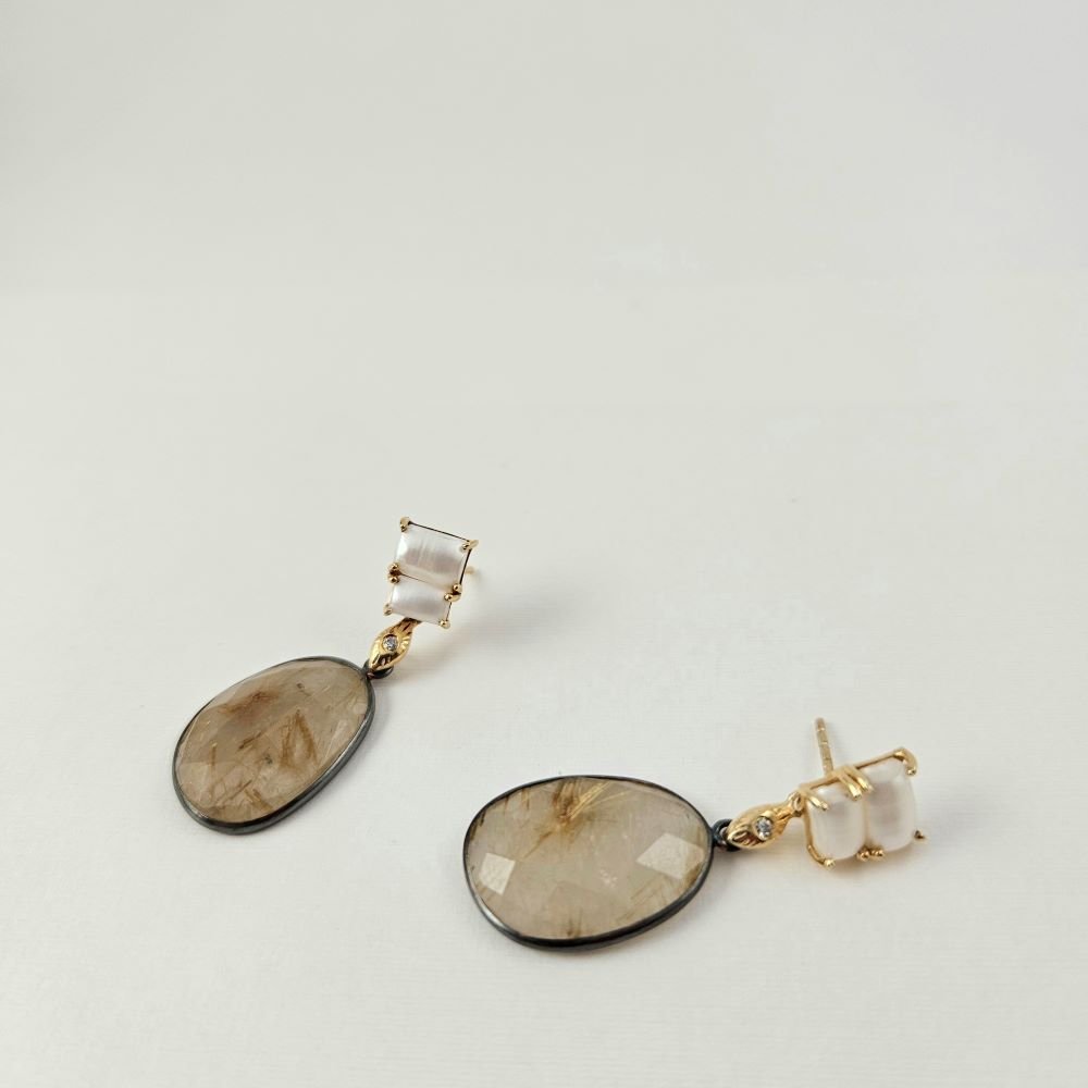 Σκουλαρίκια κρεμαστά με Ρουτίλιο & Μαργαριτάρια