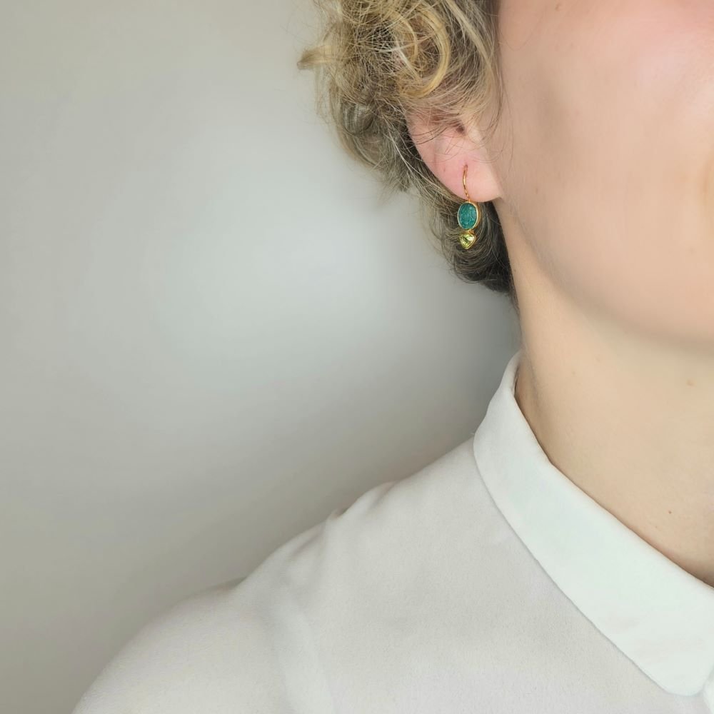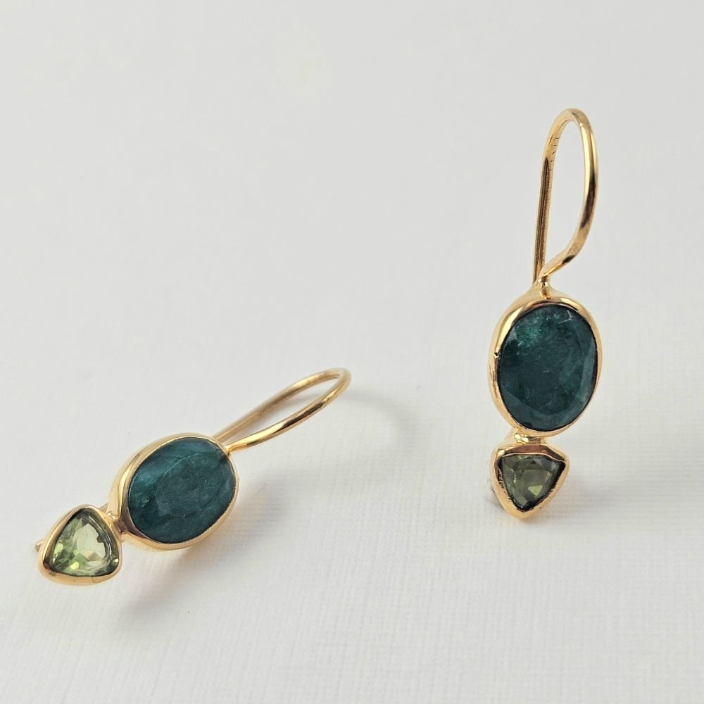 Σκουλαρίκια κρεμαστά με Σμαράγδι και Περίδοτο