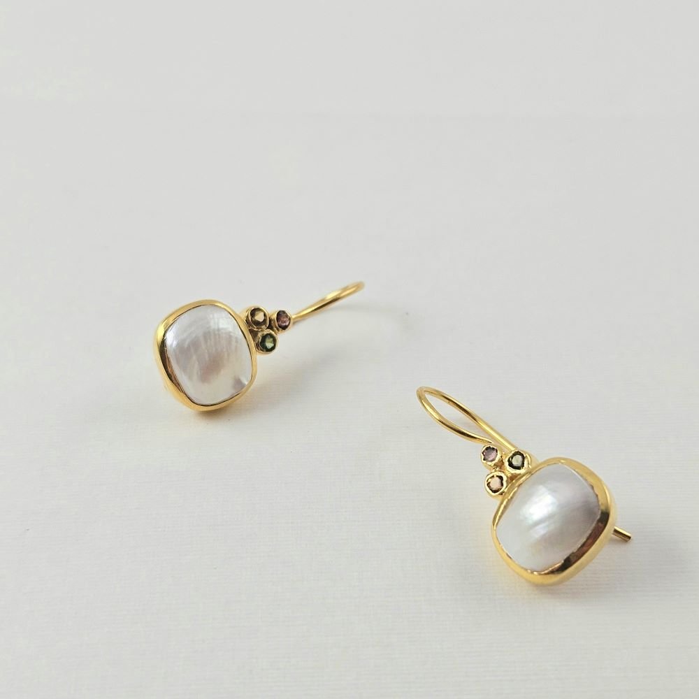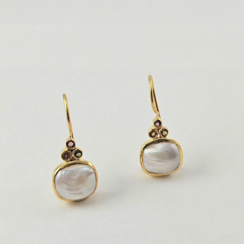 Σκουλαρίκια κρεμαστά με Τουρμαλίνη & Μαργαριτάρι