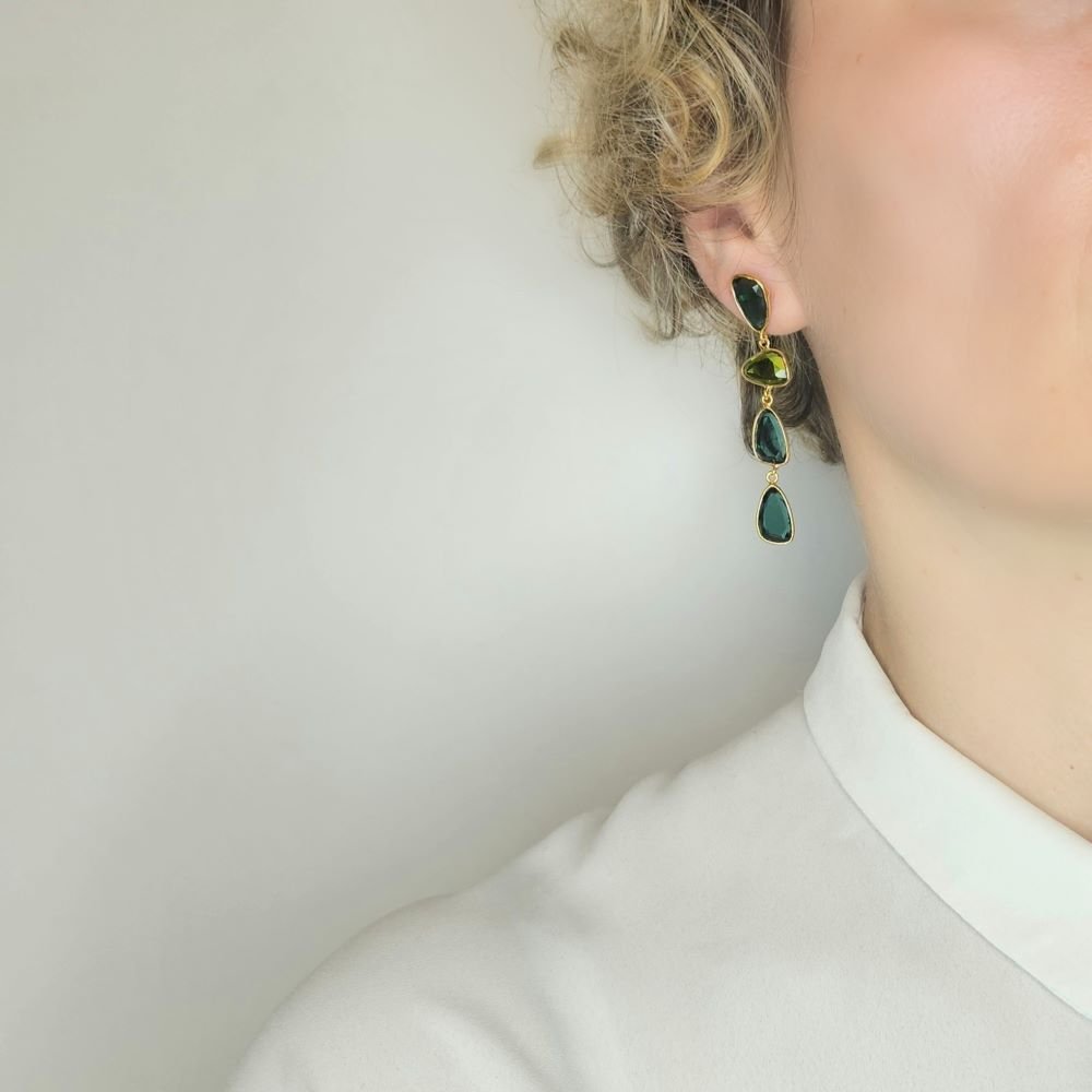 Σκουλαρίκια κρεμαστά με Τουρμαλίνη & Περίδοτο