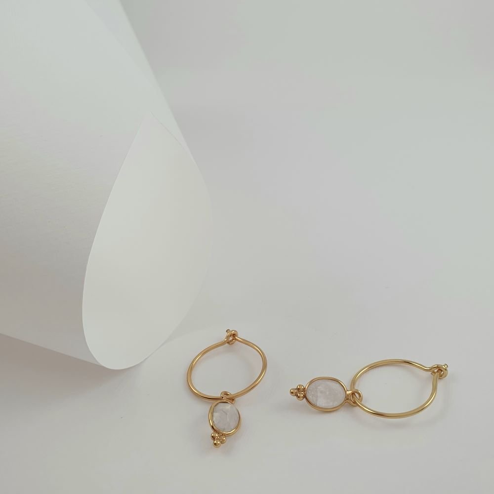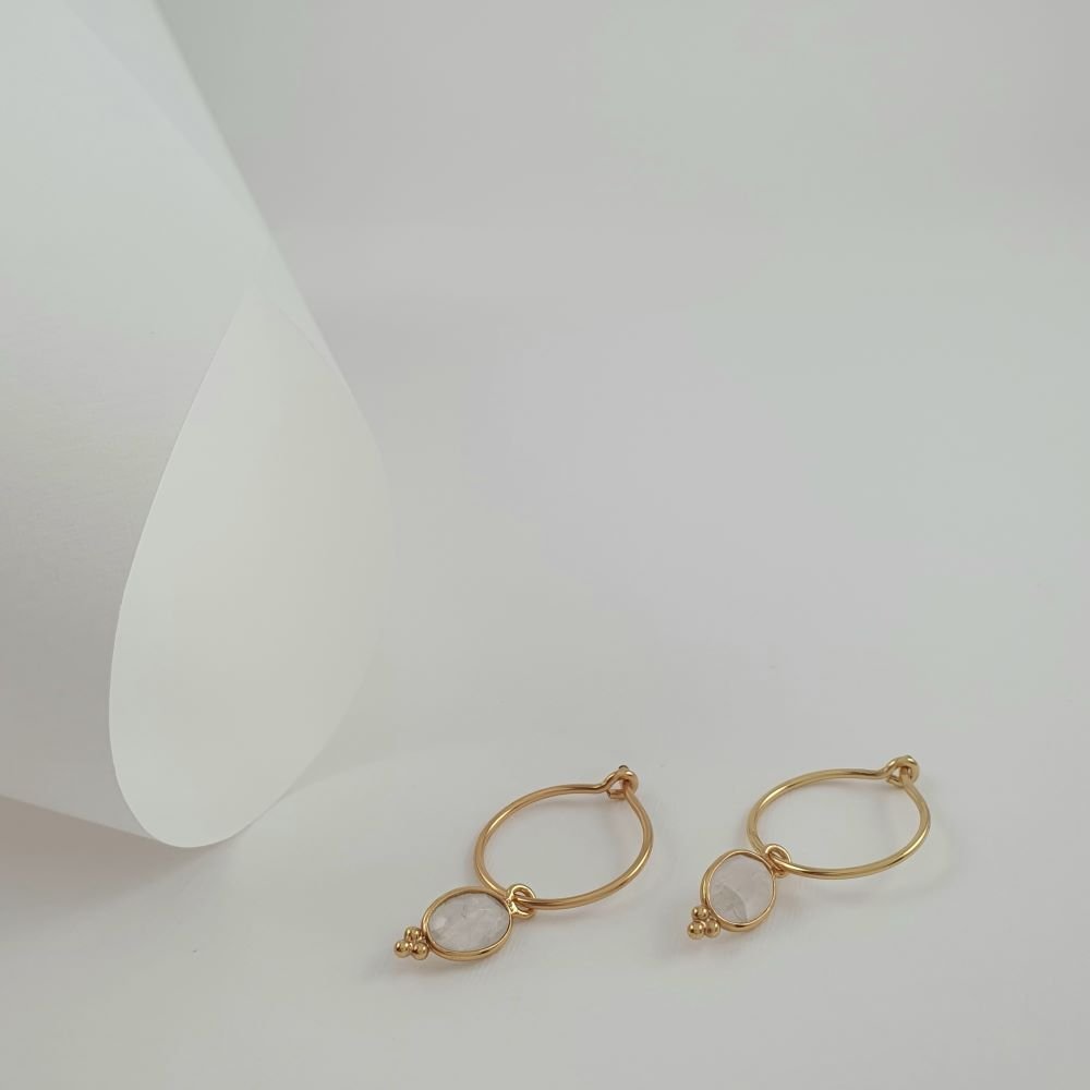 Σκουλαρίκια κρίκοι με κρεμαστή Φεγγαρόπετρα