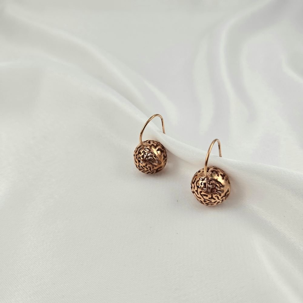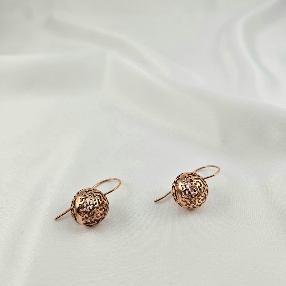 Σκουλαρίκια ροζ χρυσά κρεμαστά με σφαίρες