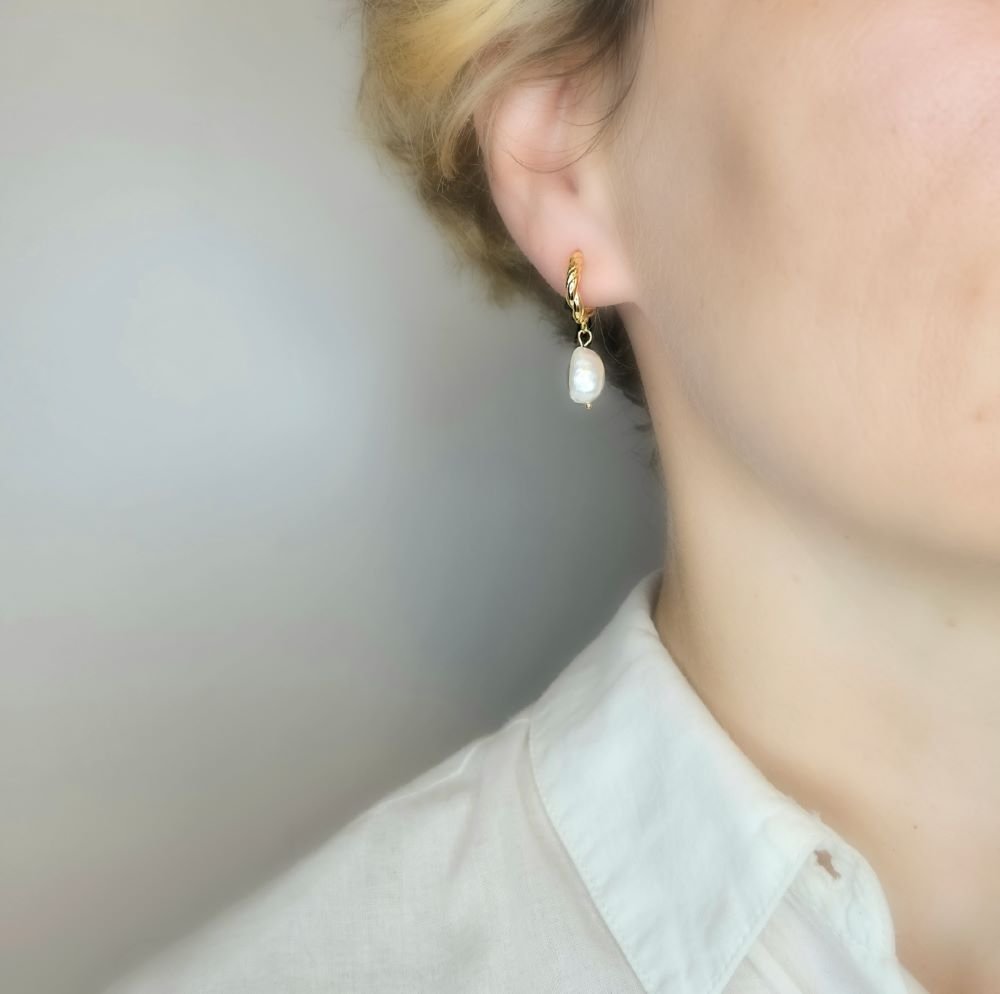 Σκουλαρίκια κρίκοι με κρεμαστό Μαργαριτάρι