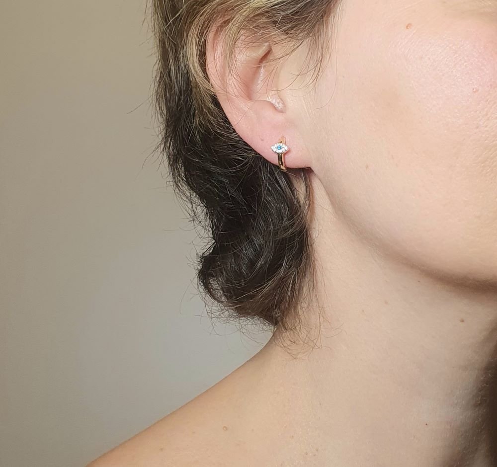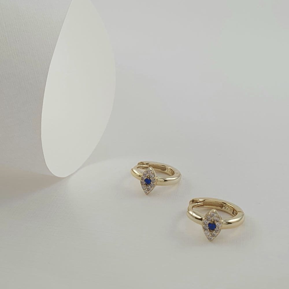 Σκουλαρίκια κρίκοι με μάτι από λευκά & μπλε Ζιργκον