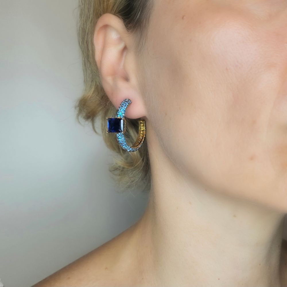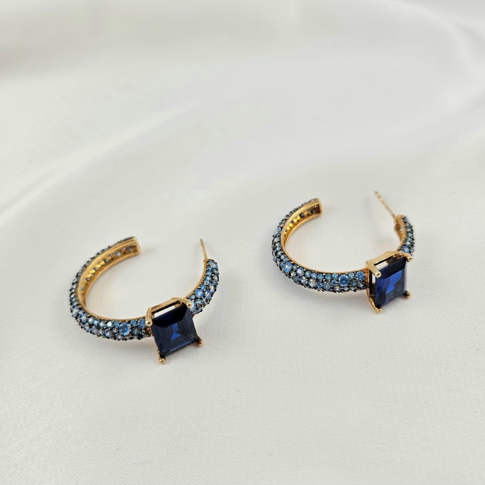Σκουλαρίκια κρίκοι με μπλε Ζιργκον