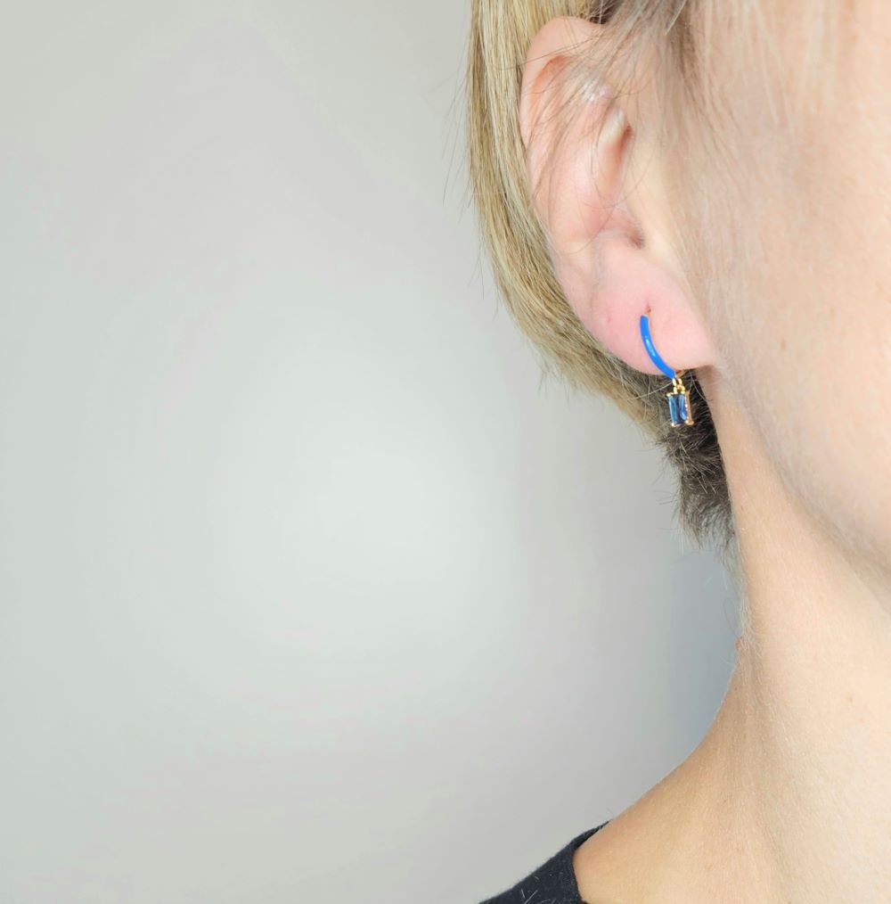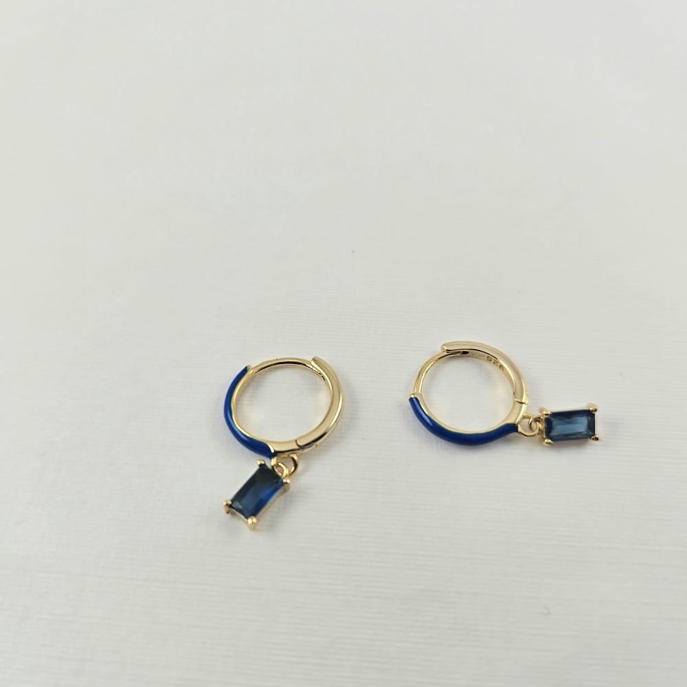 Σκουλαρίκια κρίκοι με Μπλε Ζιργκον & Σμάλτο