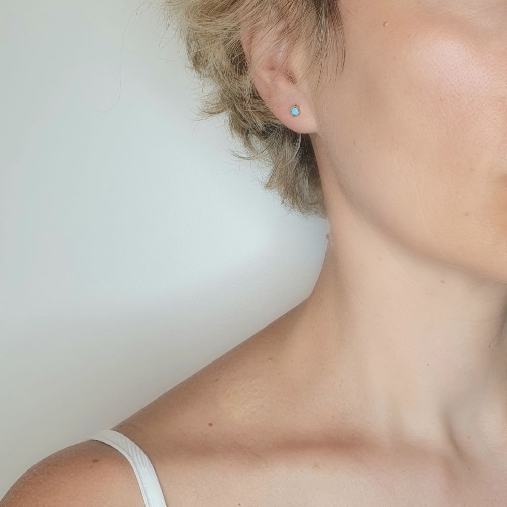 Σκουλαρίκια χρυσά καρφωτά με Τιρκουάζ