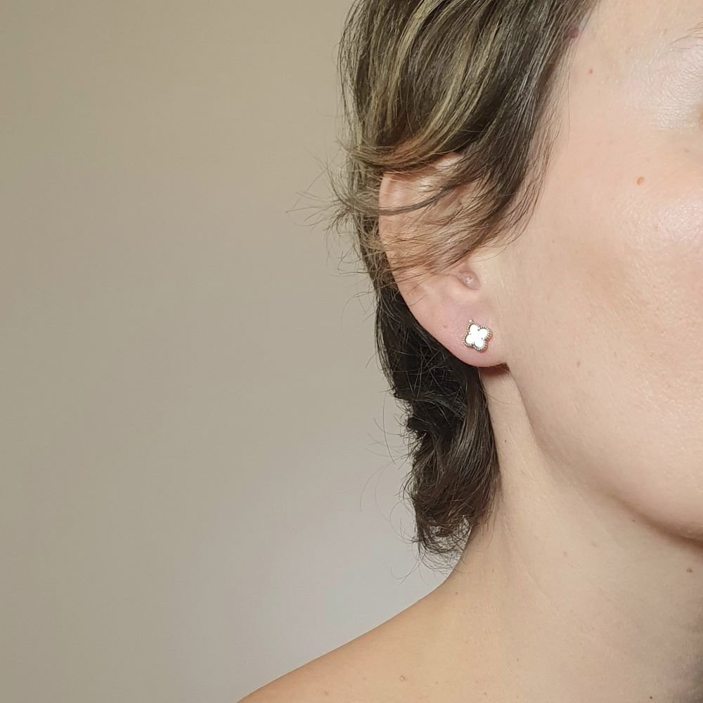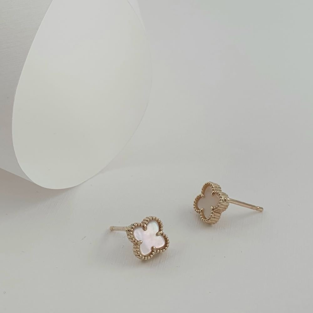 Σκουλαρίκια χρυσά κολλητά λουλούδι με Φίλντισι