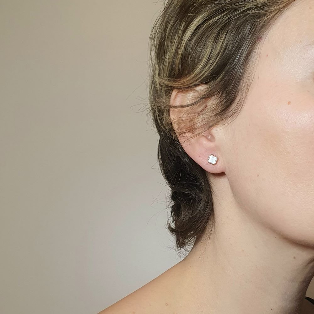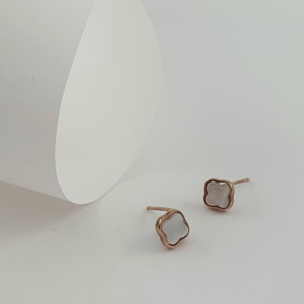 Σκουλαρίκια χρυσά κολλητά λουλούδι με Φίλντισι