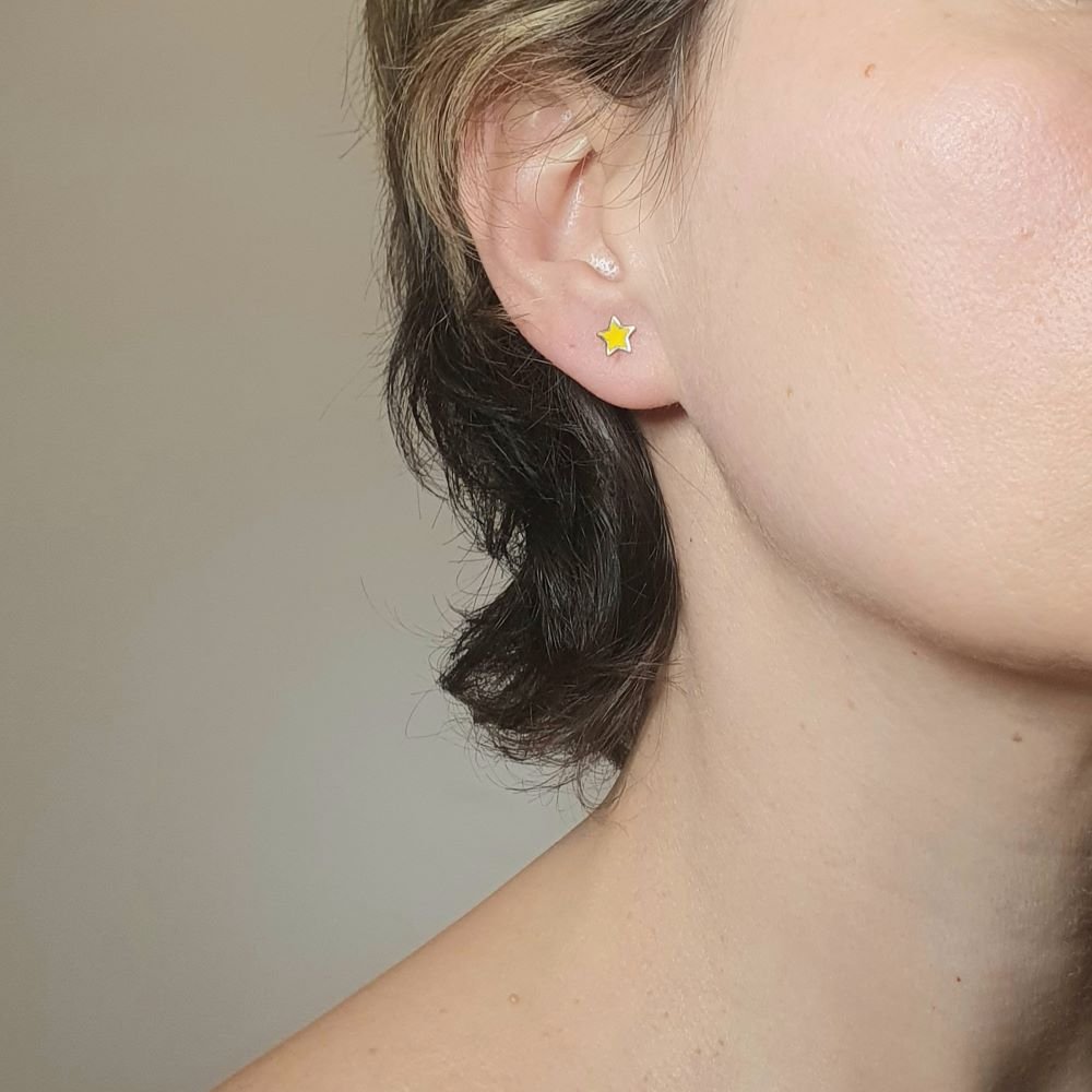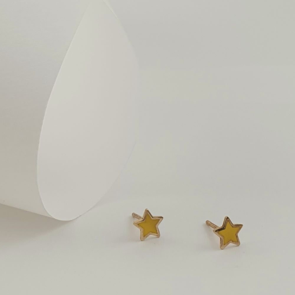 Σκουλαρίκια κολλητά αστέρια με κίτρινο Σμάλτο