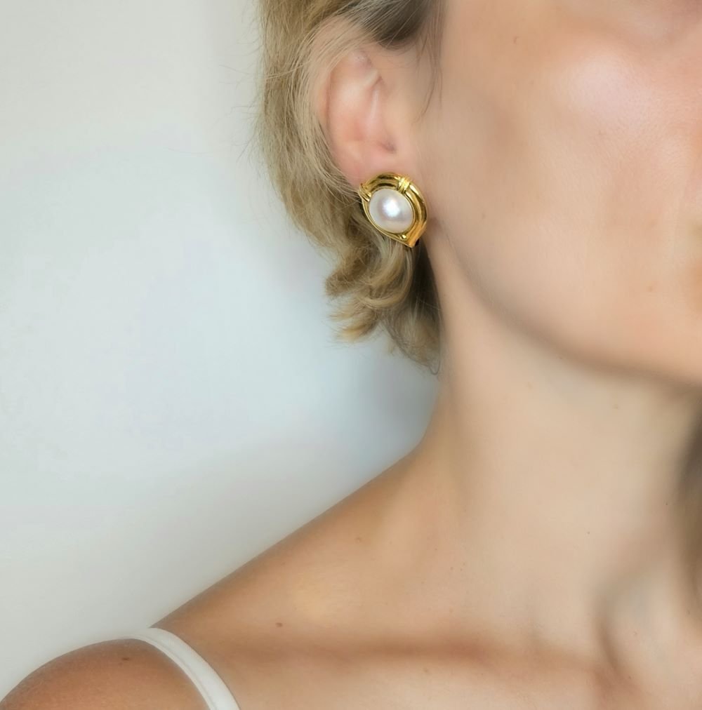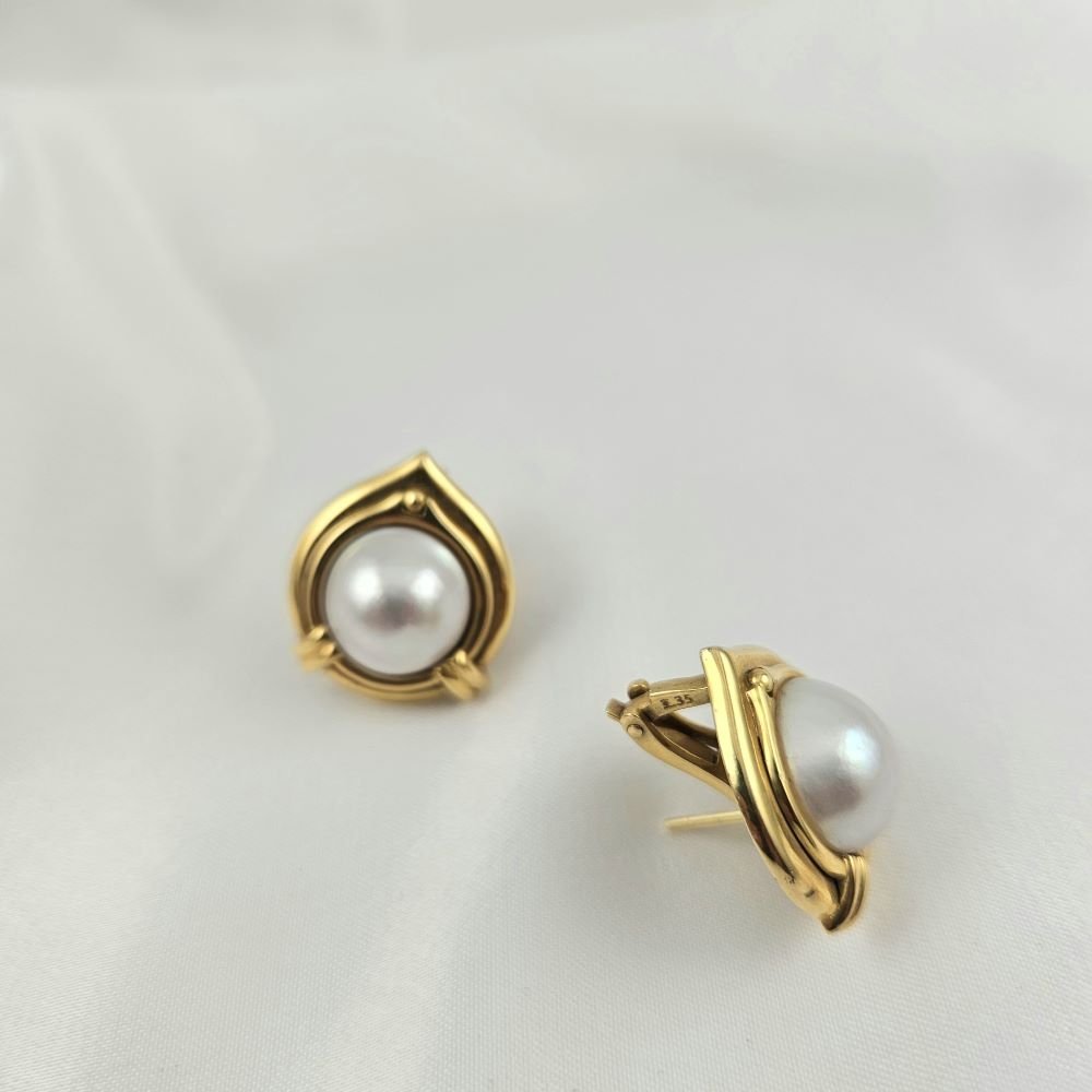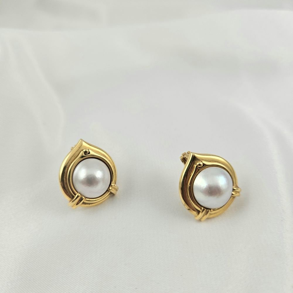 Σκουλαρίκια κολλητά χρυσά Μαργαριτάρι
