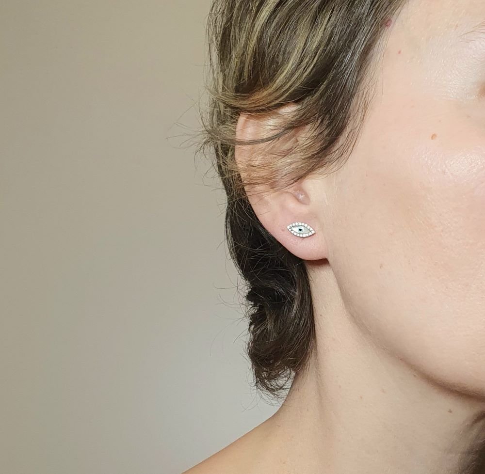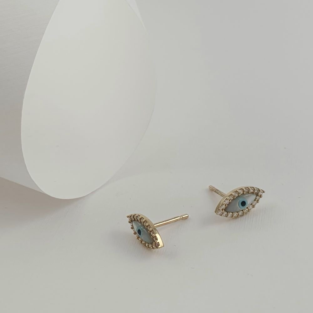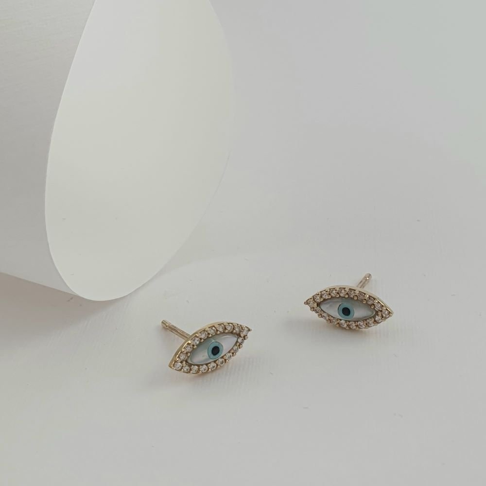 Σκουλαρίκια μάτια χρυσά κολλητά με Φίλντισι & Ζιργκον