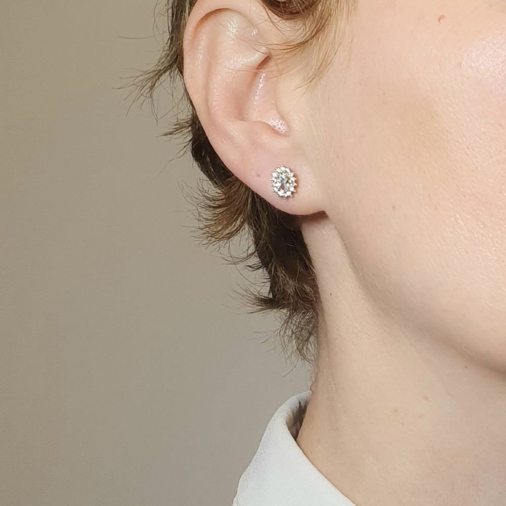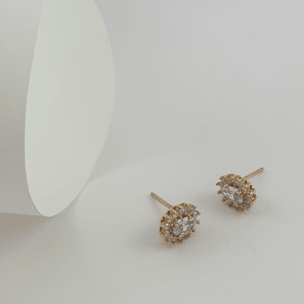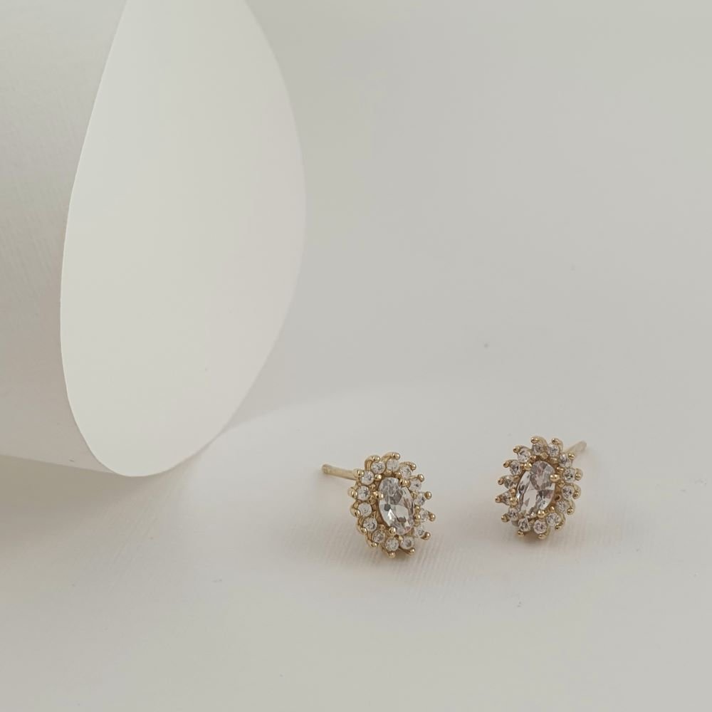 Σκουλαρίκια ροζέτα χρυσά με λευκά Ζιργκον