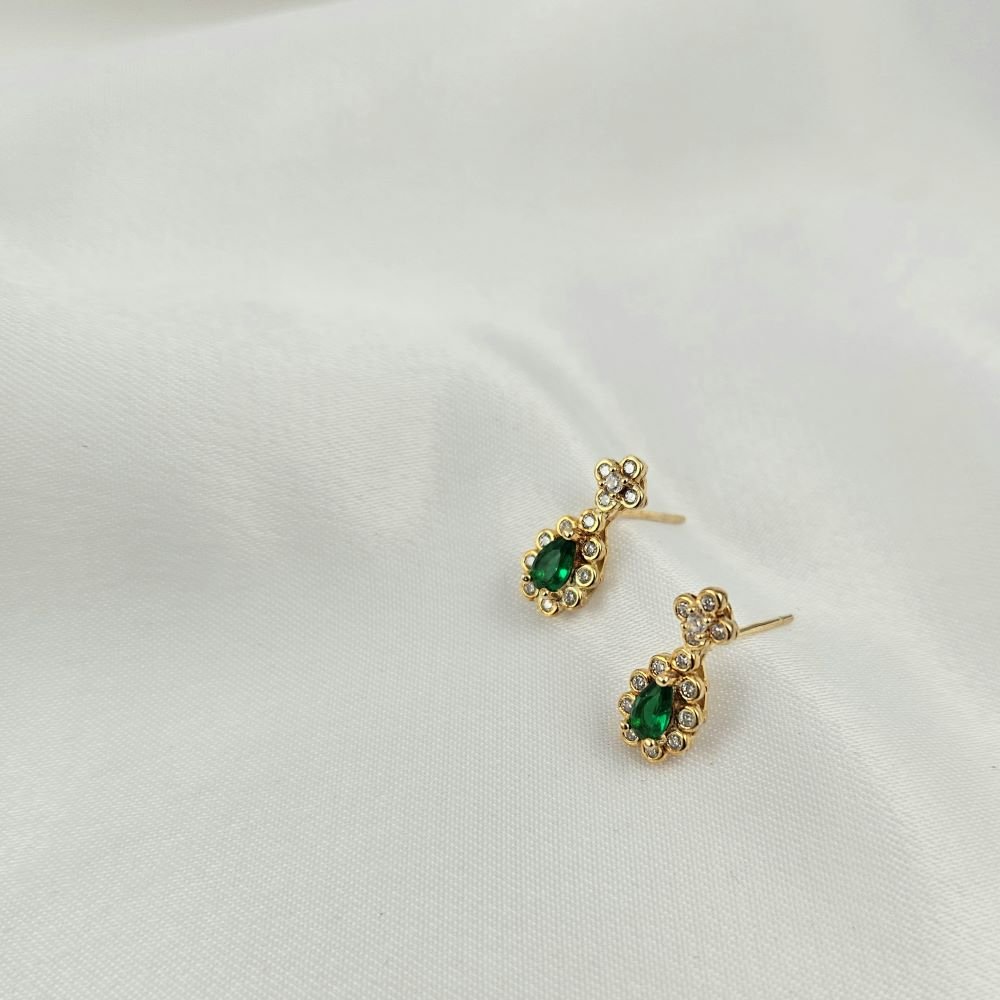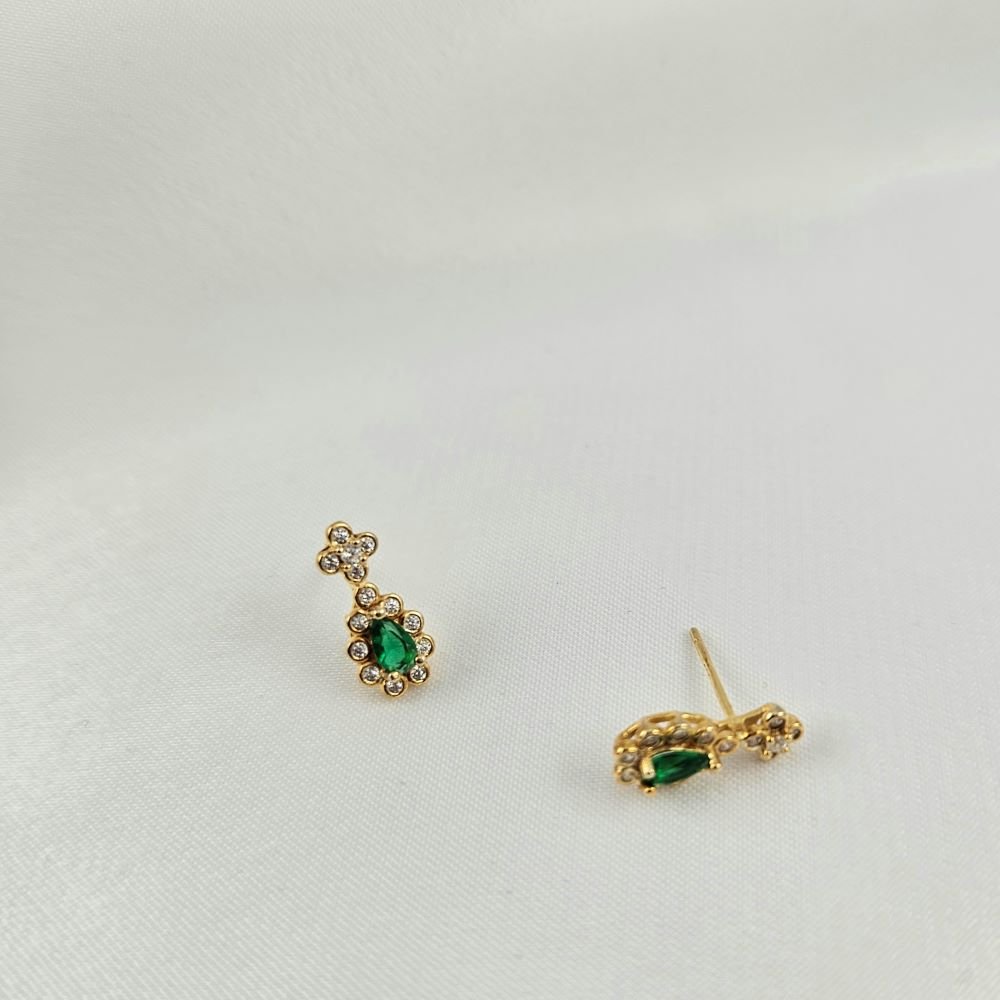 Σκουλαρίκια ροζέτα με λευκά και σμαραγδί Ζιργκον