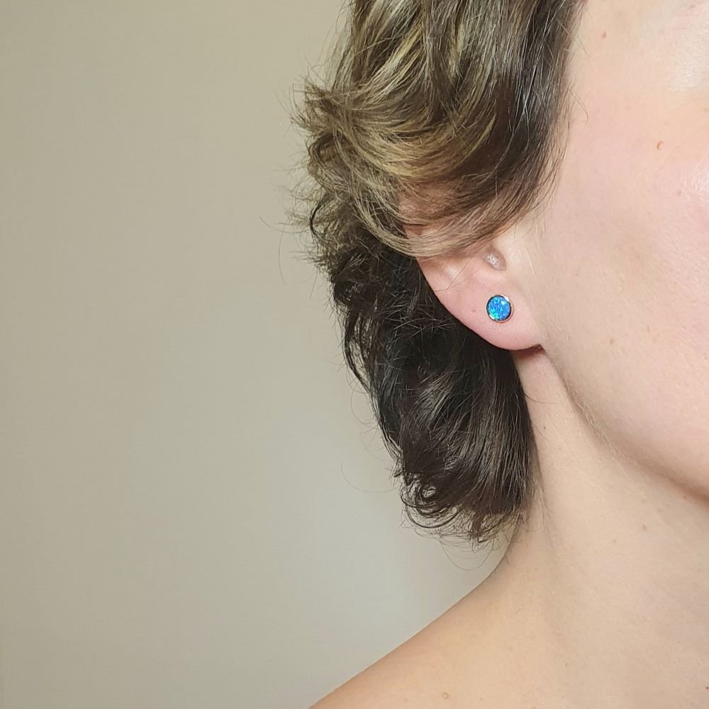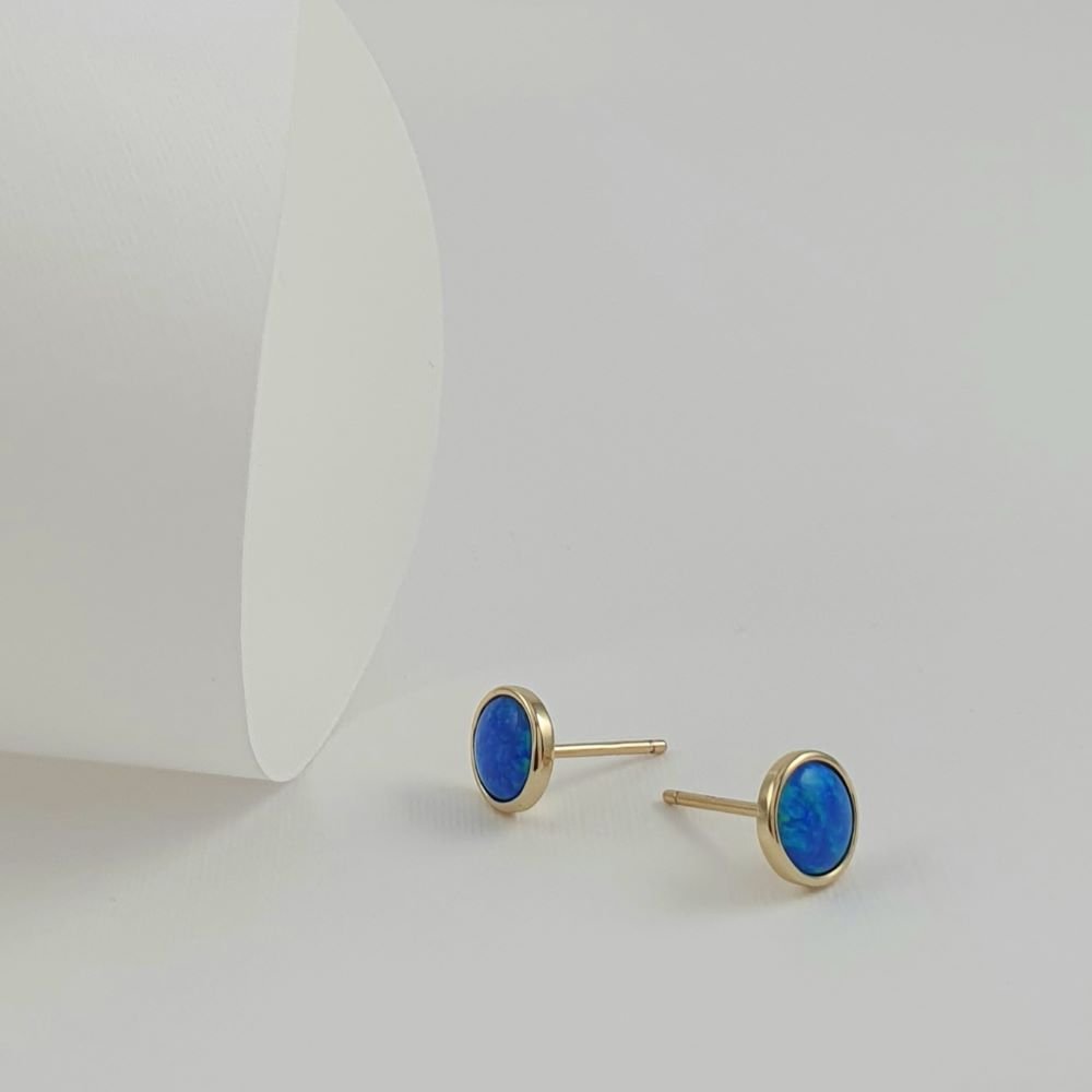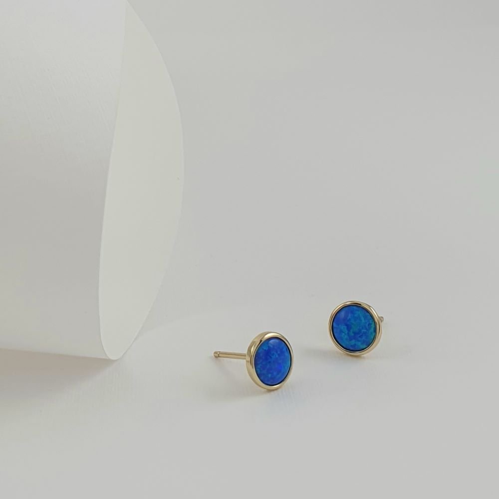 Σκουλαρίκια κολλητά στρόγγυλα με μπλε Οπάλιο