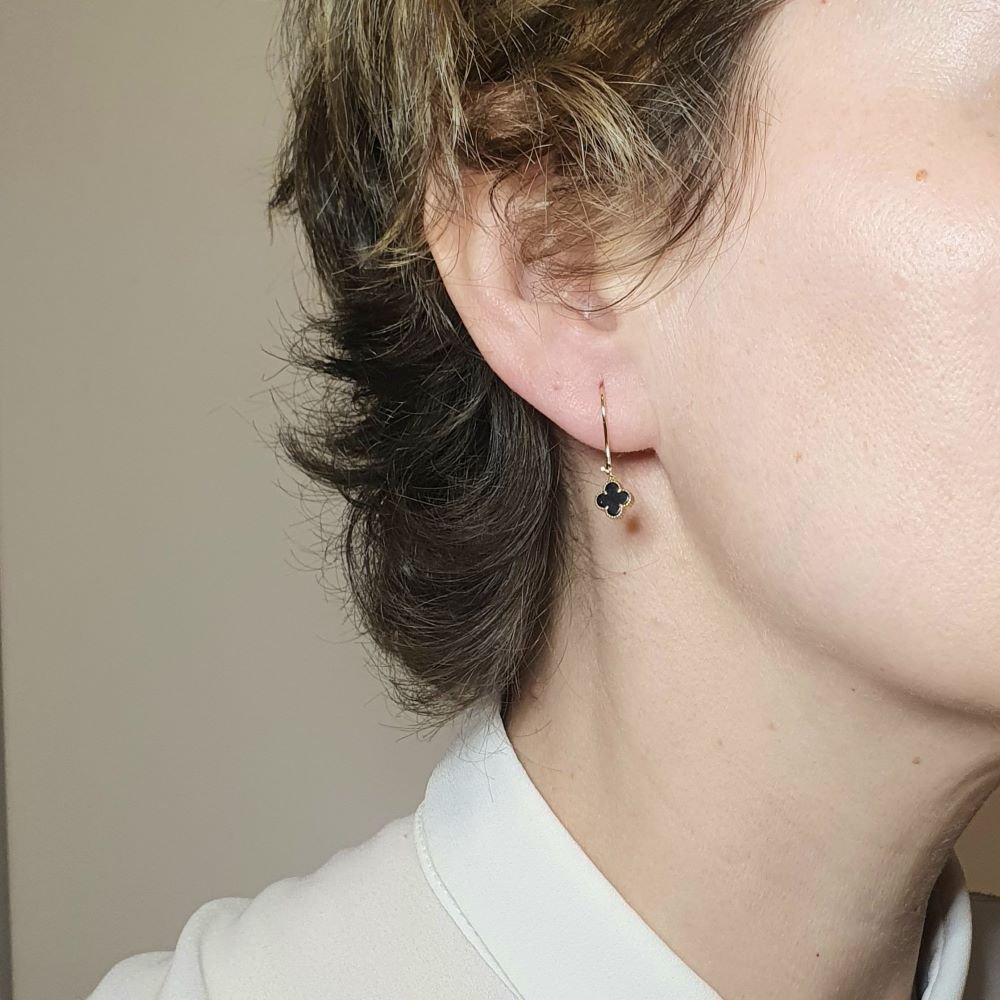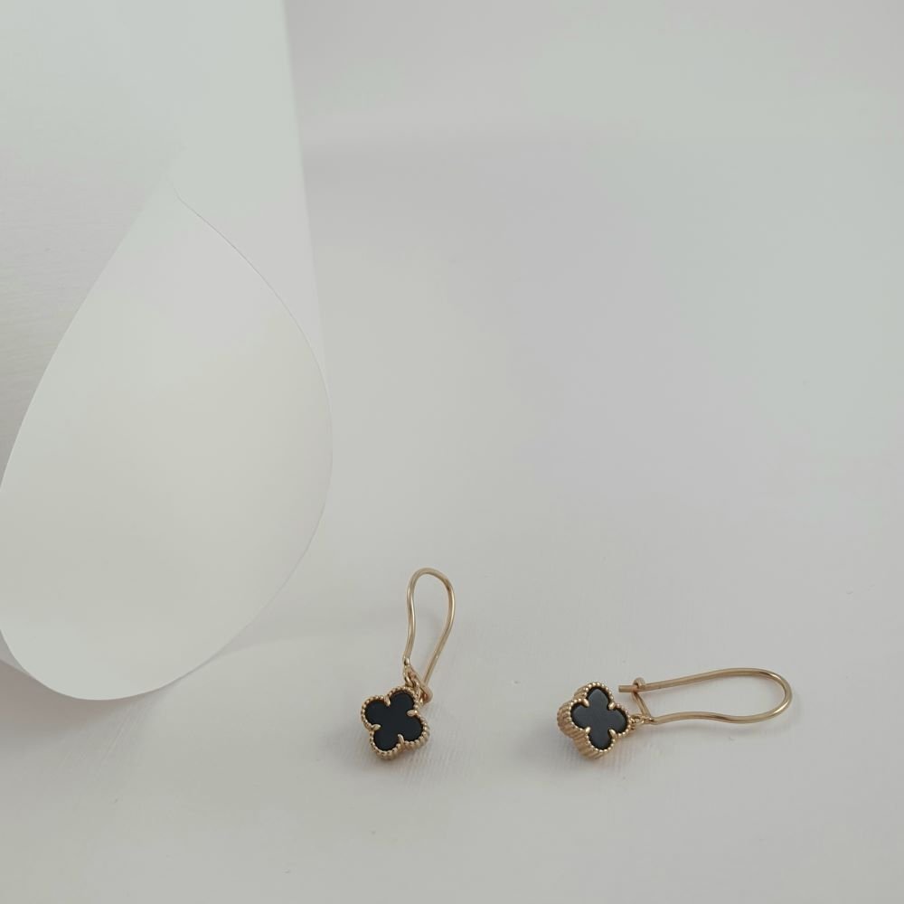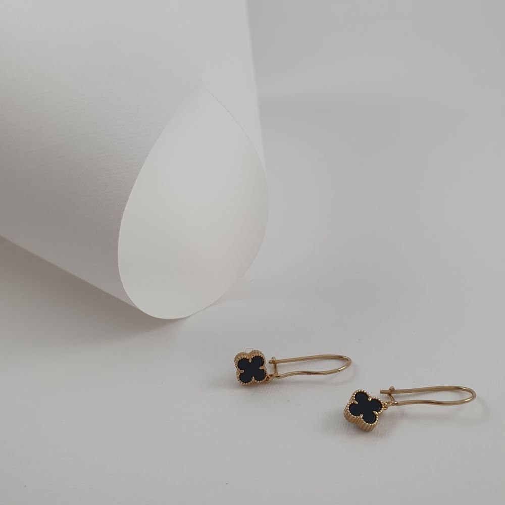 Σκουλαρίκια κρεμαστά με λουλούδι από μαύρο Όνυχα