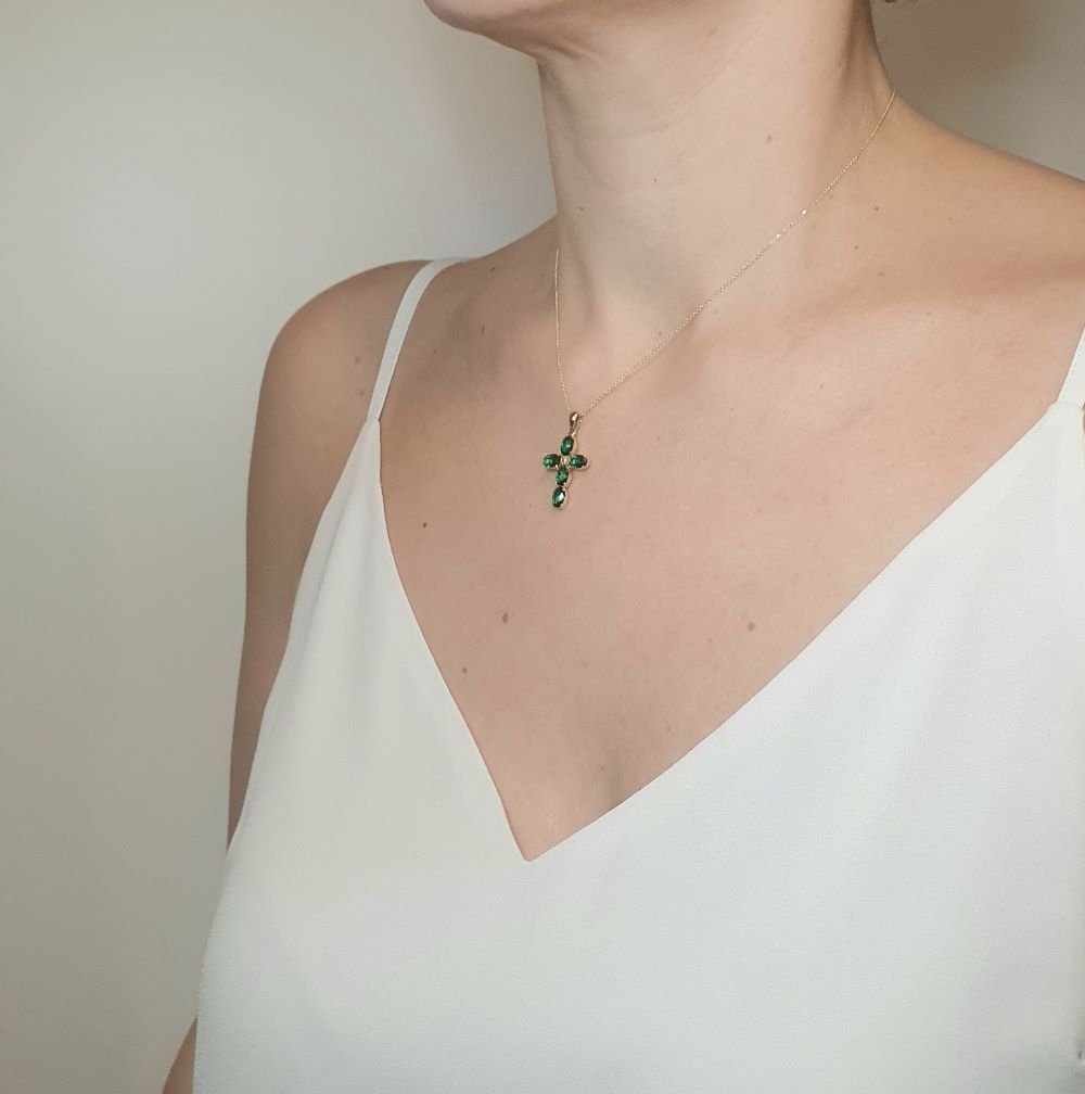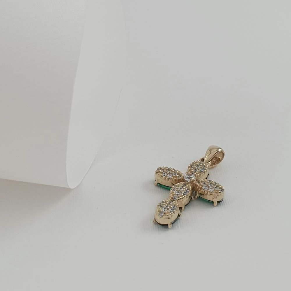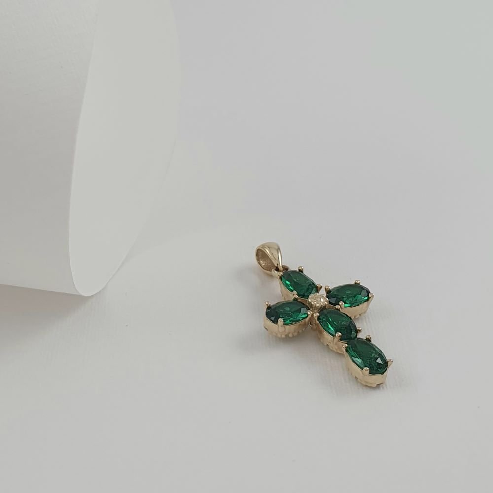 Σταυρός χρυσός με πράσινα & λευκά Ζιργκον