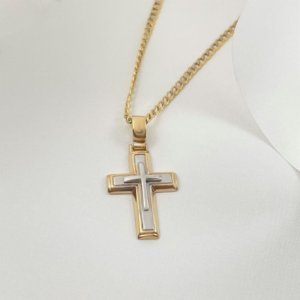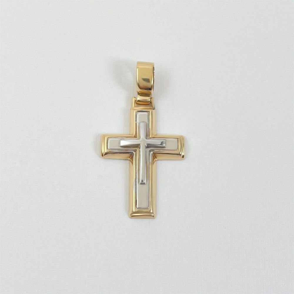 Σταυρός με πολλά επίπεδα σε λευκό κίτρινο 111 Σταυρός με πολλά επίπεδα σε λευκό κίτρινο Κωδικός 0009786 845,00 € Προσθήκη στο καλάθι ΔΙΑΘΕΣΙΜΟ Προσθήκη στην wishlist Σταυρός με πολλά επίπεδα σε λιτό σχεδιασμό. Κατασκευασμένος σε λευκό και κίτρινο χρυσό. Ιδανικός για να φορεθεί σε όλες τις ηλικίες. Η αλυσίδα που προτείνουμε είναι δίχρωμη και μπορείτε να τη βρείτε με τον κωδικό 0027101. Αν χρειάζεστε βοήθεια για την επιλογή σταυρού παρακολουθήστε το παρακάτω βίντεο. ΧΡΩΜΑ ΜΕΤΑΛΛΟΥ: ΧΡΩΜΑ ΜΕΤΑΛΛΟΥ ΚΙΤΡΙΝΟ-ΛΕΥΚΟΚΙΤΡΙΝΟ-ΛΕΥΚΟ ΕΠΕΞΕΡΓΑΣΙΑ: ΕΠΕΞΕΡΓΑΣΙΑ ΓΥΑΛΙΣΤΕΡΟΓΥΑΛΙΣΤΕΡΟ Διαστασεις Οι διαστάσεις του σταυρού μαζί με τον κρίκο είναι 3,3Χ1,7 cm Βαρος 4,30 g Ποσότητα Εγγυηση Συνοδεύεται από εγγύηση ποιότητας και κατασκευής από το ΚΛΖΛΝΛLBΛ.