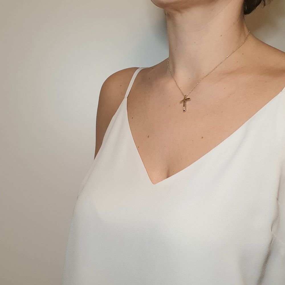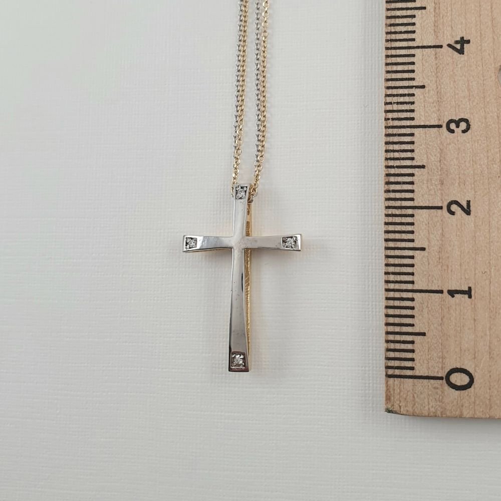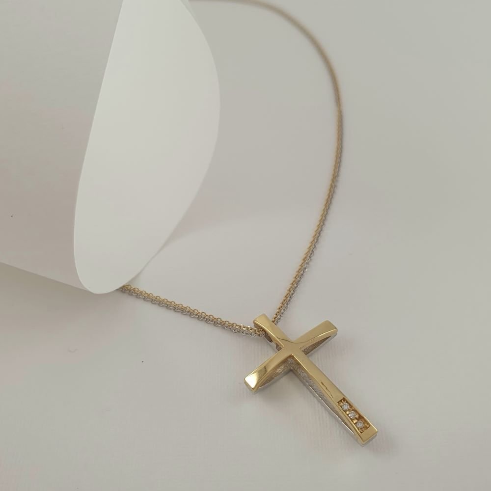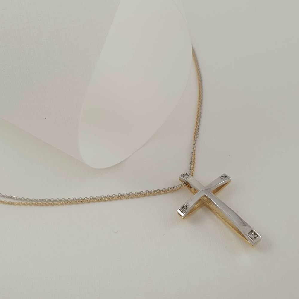 Σταυρός χρυσός δίχρωμος με διαμάντια & αλυσίδα 2 όψεων