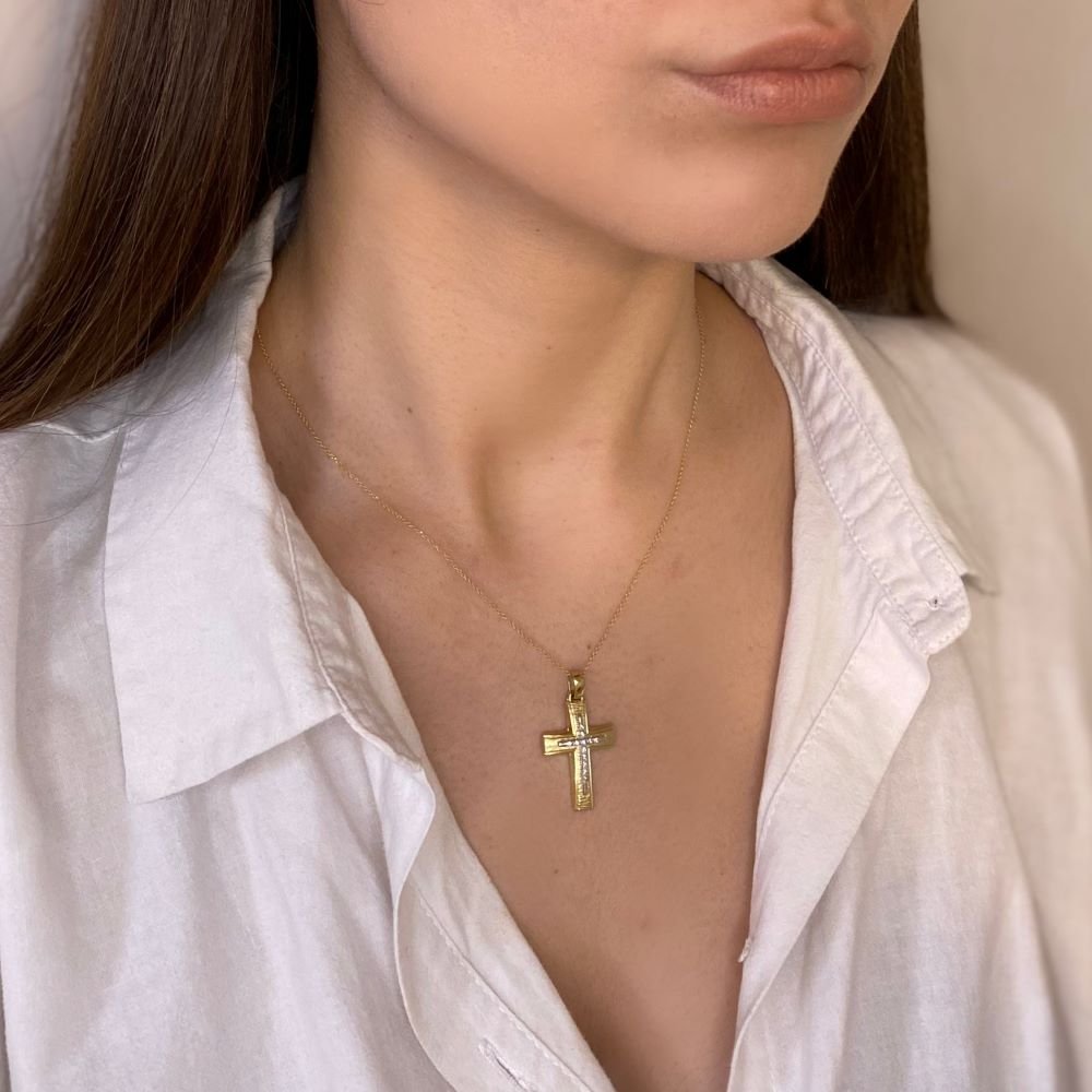 Σταυρός δίχρωμος κίτρινος-λευκός με ζιργκόν