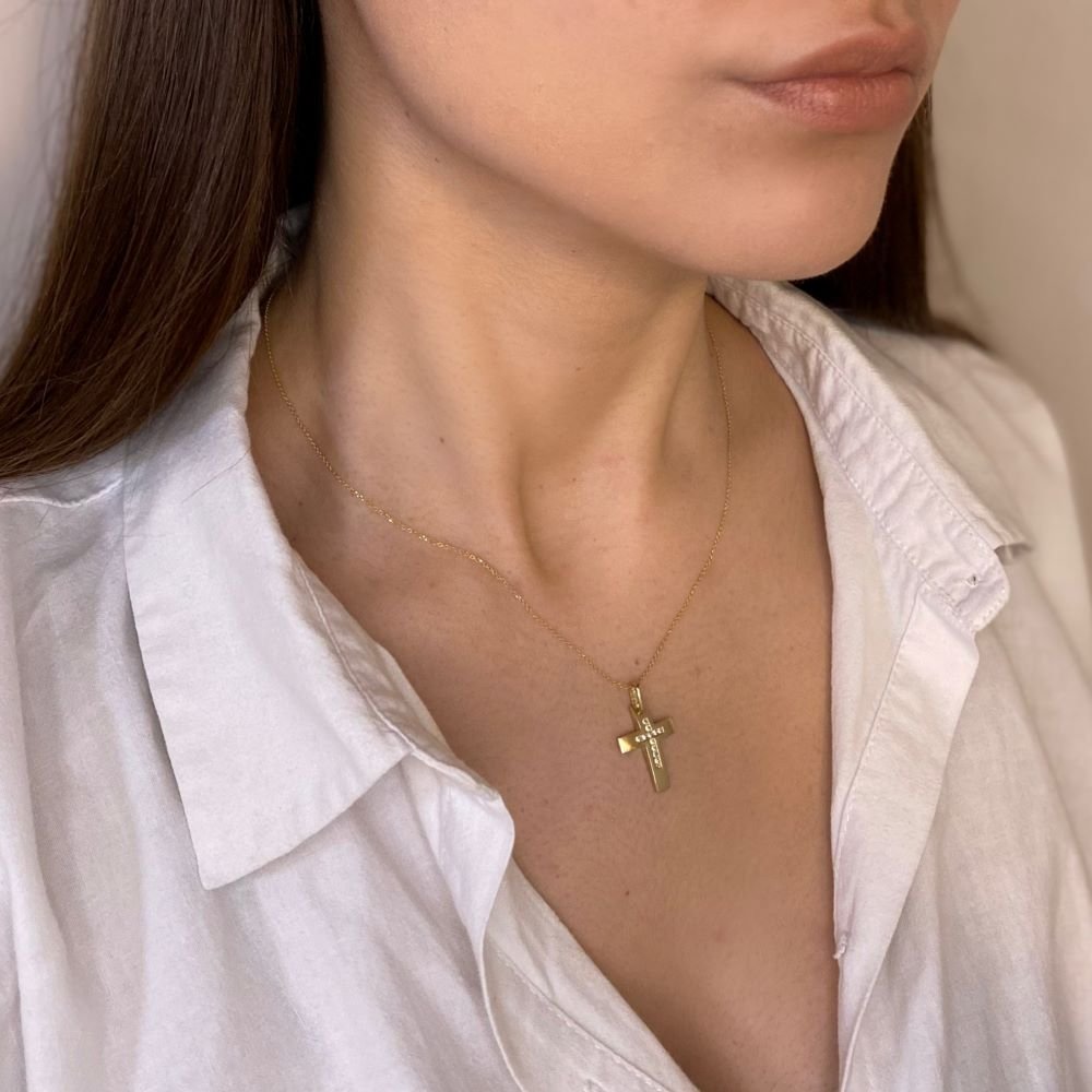 Σταυρός διπλής όψης με ζιργκόν 1111 Σταυρός διπλής όψης με ζιργκόν Κωδικός 0042357 375,00 € Προσθήκη στο καλάθι ΔΙΑΘΕΣΙΜΟ Προσθήκη στην wishlist Σταυρός διπλής όψης, γυαλιστερός που κοσμείται στο κέντρο με λαμπερές ζιργκόν πέτρες. Η πίσω πλευρά έχει ματ ανάγλυφη επεξεργασία. Παρακολουθήστε το παρακάτω βίντεο αν θέλετε να μάθετε περισσότερα για το σταυρό και τον συμβολισμό του. ΧΡΩΜΑ ΜΕΤΑΛΛΟΥ: ΧΡΩΜΑ ΜΕΤΑΛΛΟΥ ΚΙΤΡΙΝΟΚΙΤΡΙΝΟ ΜΕΤΑΛΛΟ: ΜΕΤΑΛΛΟ ΧΡΥΣΟΣ K14ΧΡΥΣΟΣ K14 ΕΠΕΞΕΡΓΑΣΙΑ: ΕΠΕΞΕΡΓΑΣΙΑ ΜΑΤ-ΓΥΑΛΙΣΤΕΡΟΜΑΤ-ΓΥΑΛΙΣΤΕΡΟ ΛΙΘΟΣ ΛΙΘΟΣ ΛΙΘΟΣ: ΛΙΘΟΣ ΖΙΡΓΚΟΝΖΙΡΓΚΟΝ ΧΡΩΜΑ ΛΙΘΟΥ ΧΡΩΜΑ ΛΙΘΟΥ ΧΡΩΜΑ ΛΙΘΟΥ: ΧΡΩΜΑ ΛΙΘΟΥ WHITEWHITE Διαστασεις Οι διαστάσεις του σταυρού είναι 25,2x15,3 mm (η πρώτη διάσταση είναι μαζί με τον κρίκο) Βαρος 1,80 g Ποσότητα
